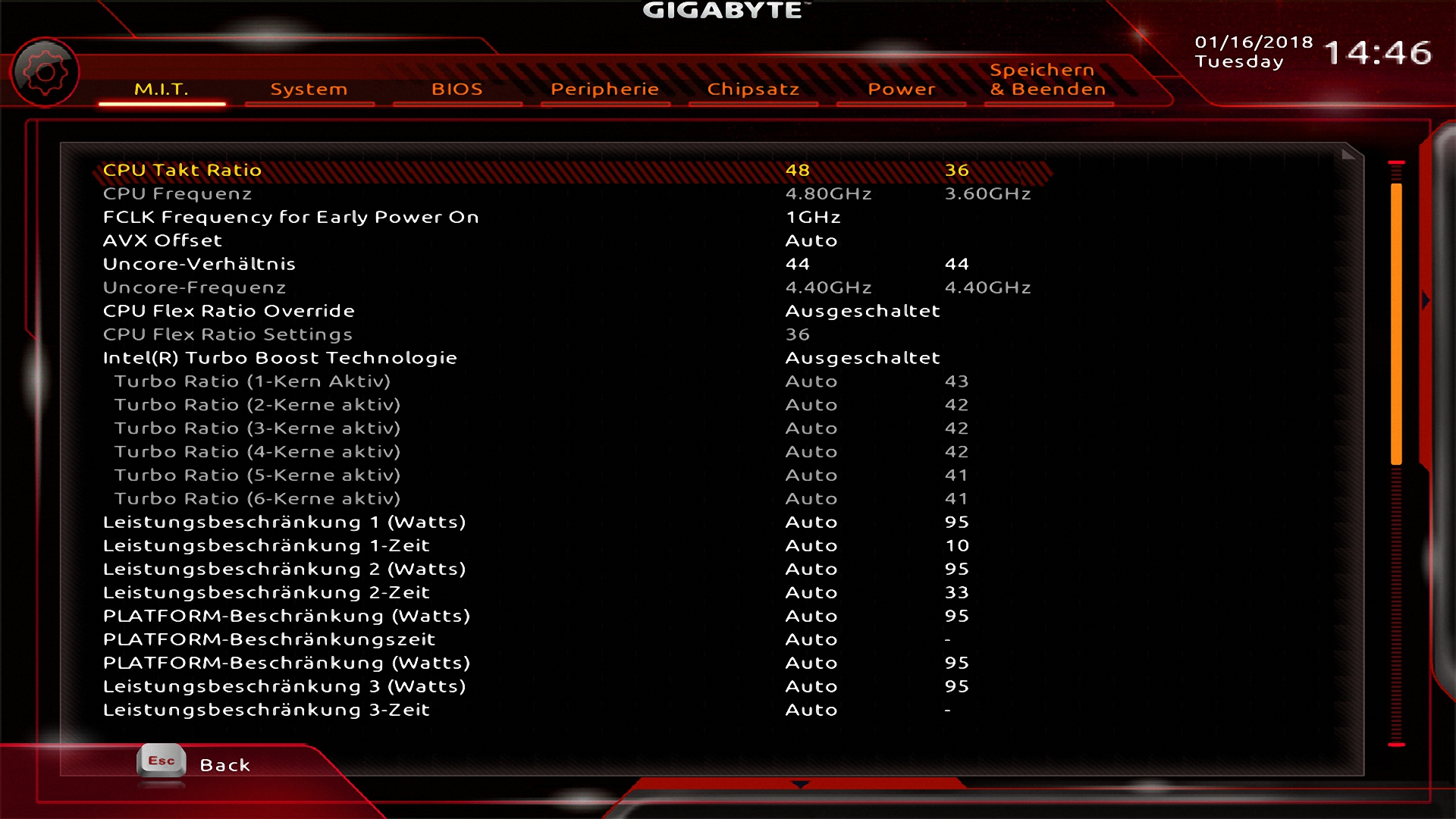 Also in meinem Bios von Gigabyte Z370 gibt es keine solche Einstellung, wo ich z.B. diese Einstellung "Long Duration Package" und "Short Duration Package Power Limit" mit dem Wert 4095 [wie in der8auers Video] einstellen kann.