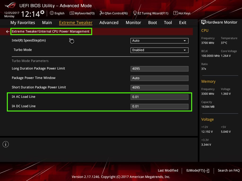 Damit das funktioniert muß man bei Asus SVID Behavior auf Best Case Scenario einstellen. CPU SVID Support muß egal ob offset oder adaptiv auf Auto oder enabled stehen.