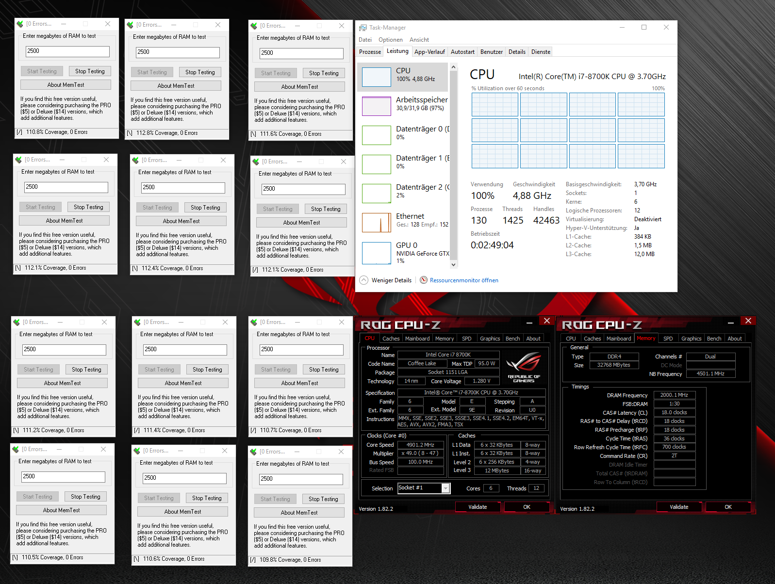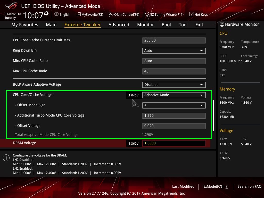 Ich weiß (durch testen), das meine CPU für 4,6Ghz stabil in allen Lebenslagen 1,216V unter Last in Prime small sehen will. Dabei ist vollkommen egal, ob ich das im Manual, Offset oder Adaptiv Mode mache. 1,200V ist spätestens bei einem LinX run nicht mehr stabil.