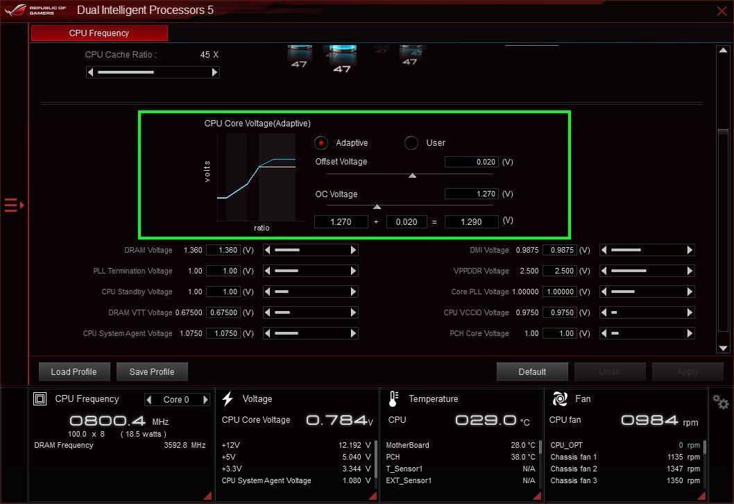 Nutzt man bei Asus offset oder Adaptiv, sollte man diese beiden Sachen auch noch so einstellen. Hat der Guru bei Asus so gesagt und keine Ahnung warum das so ist.