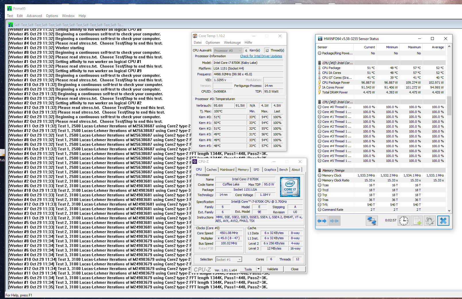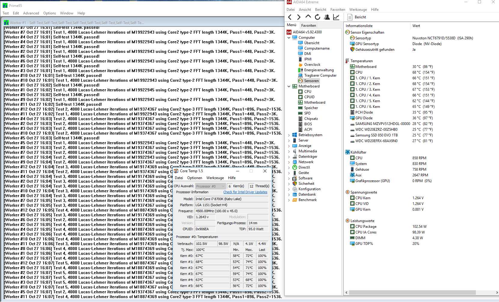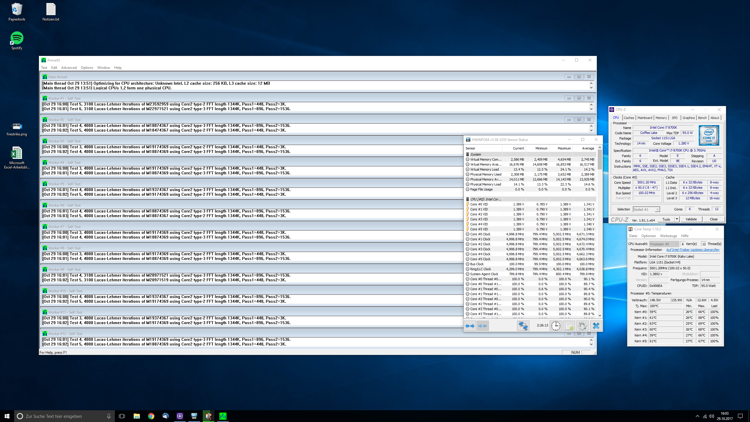 mit Prime 95 26.6 lange Weilejetzt ist Luft nach oben..mal schauen - ich mag mein System gerne AVX stable, aber ich glaube man bekommt "Keinen" 8700K mit +5GHz AVX Stable