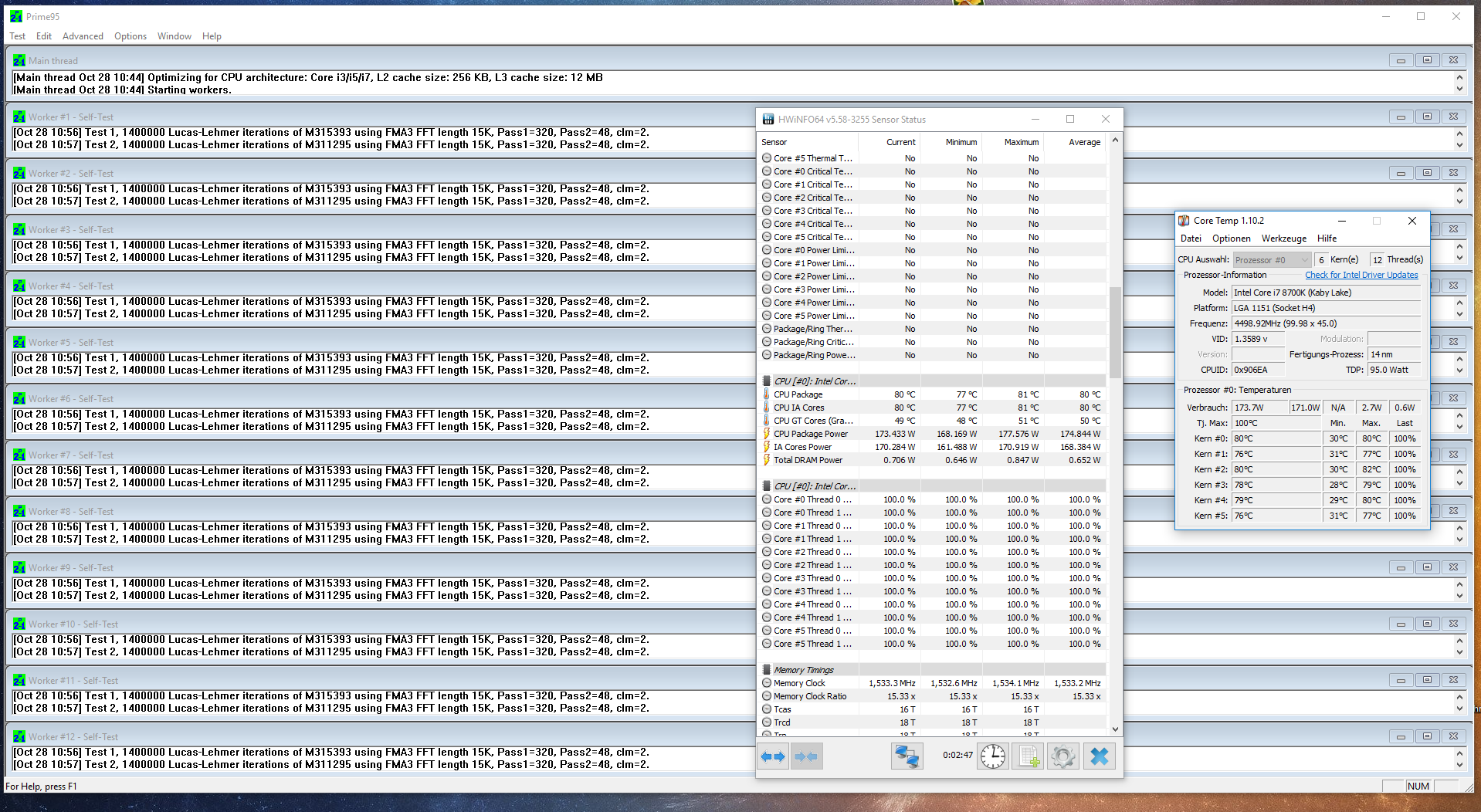 Unter Volllast droppt die Spannung auf ca. 1,28 V. Hier ein Screenshot nach 2 Stunden Prime 26.6: