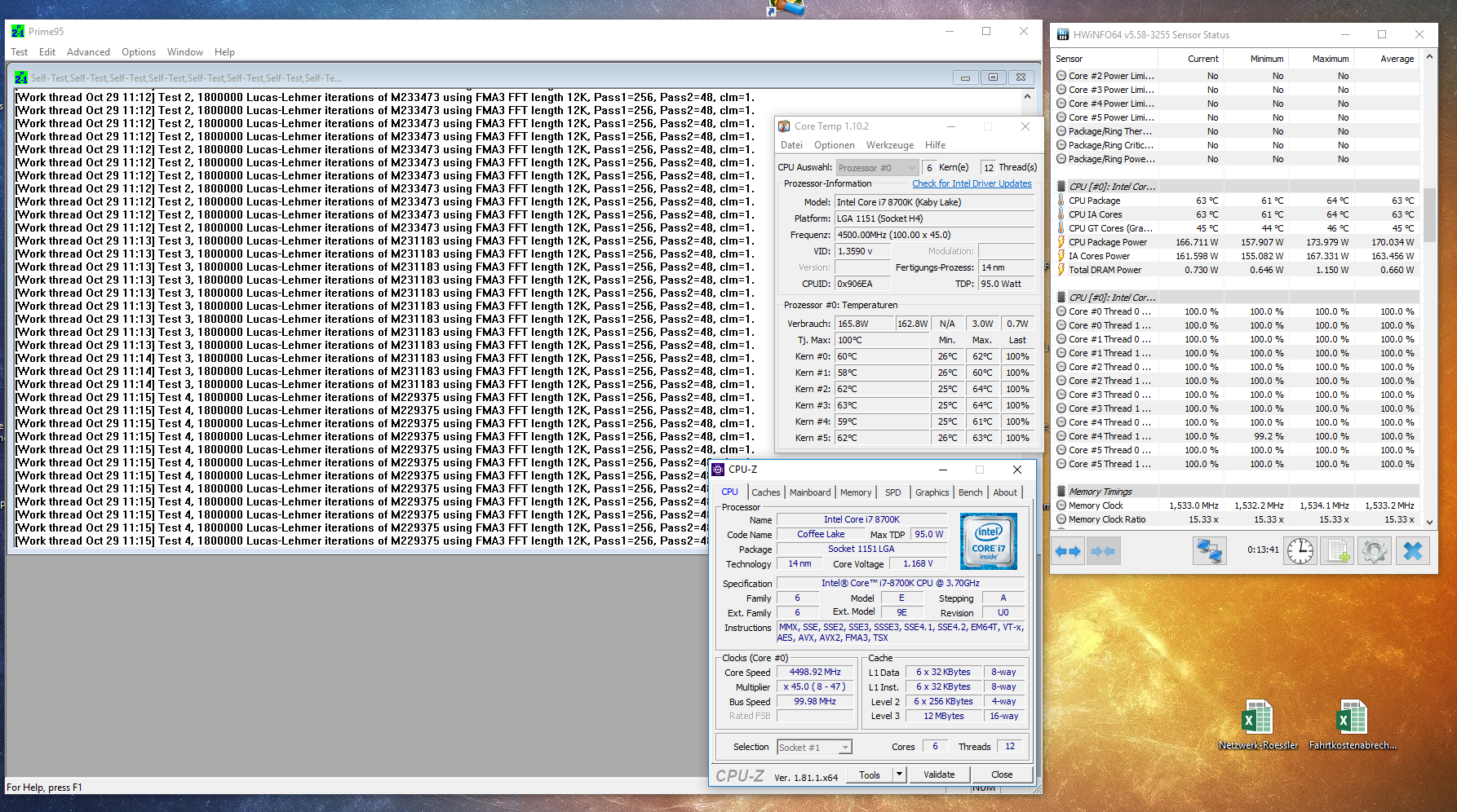 das ganze erstmal wieder "nur" mit 4.5GHz mit Small FFTs und Prime 95 29.3