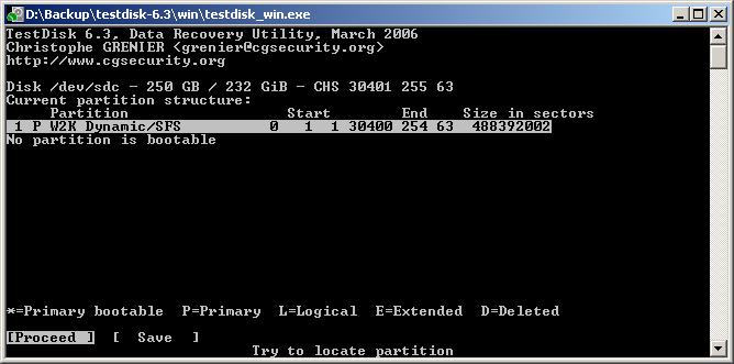 das ergebnis war, dass anscheinend kein dateisystem gefunden wurde (ich bin mir nicht ganz sicher) und der ganze scan somit für die katz war