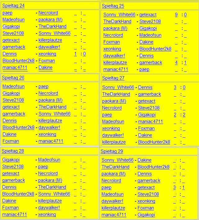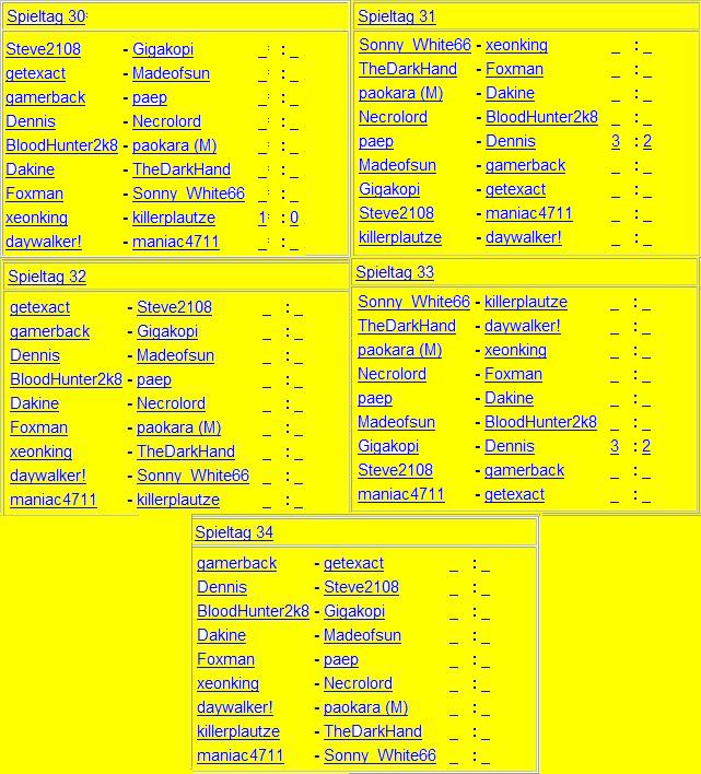 Freigegebene Spieltage - Alle (siehe Anhang)