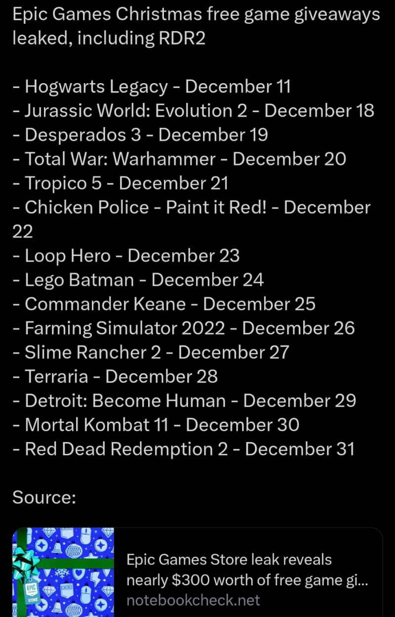 Das hier sind die freien Games die man derzeit bis Ende des Jahres bei EPIC bekommt.