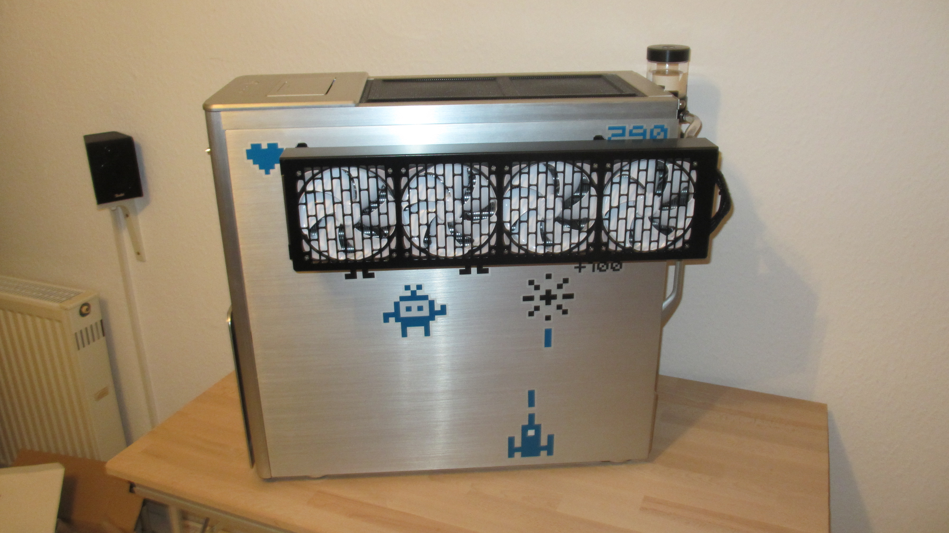 Mit meinem 480 Radi bleibt sie auch schön Kühl Max 43°c bin fast Glücklich, werde demnächst ein Mod bios draufmachen brauch mehr Spannung.Ja nicht schön aber erfüllt seinen zweck