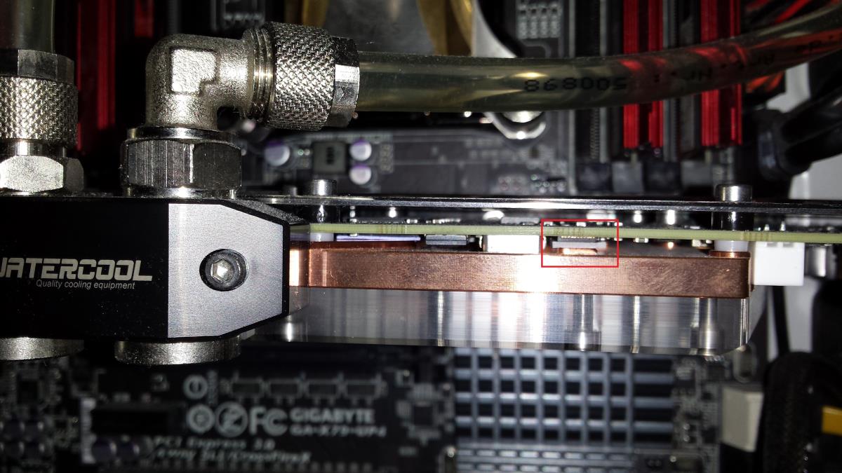 Mehrere Pads aufeinander sind nicht gut. Versuche auf die Pads ein passendes Stück Kupfer einzusetzen, so dass es die Wärme der Pads direkt an die Backplate vermitteln kann.