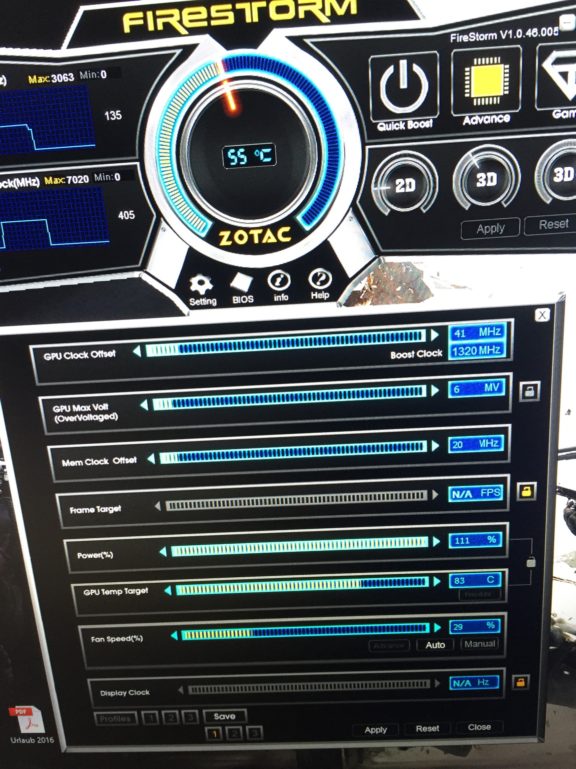Das ist aktuell mal die Einstellung die ich in Firestorm stabil betreiben konnte. Wieviel mv+ kann man der Zotac in etwa abverlangen?
