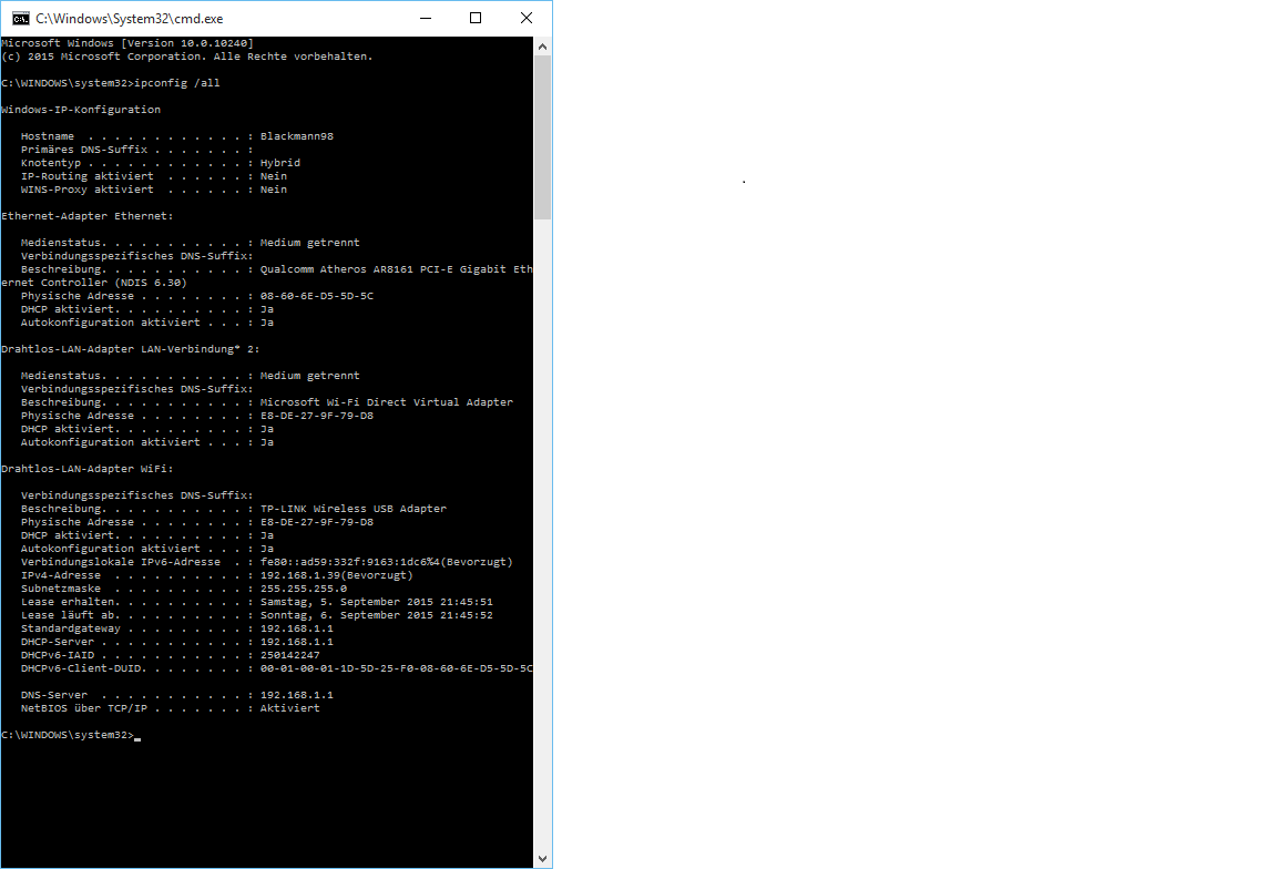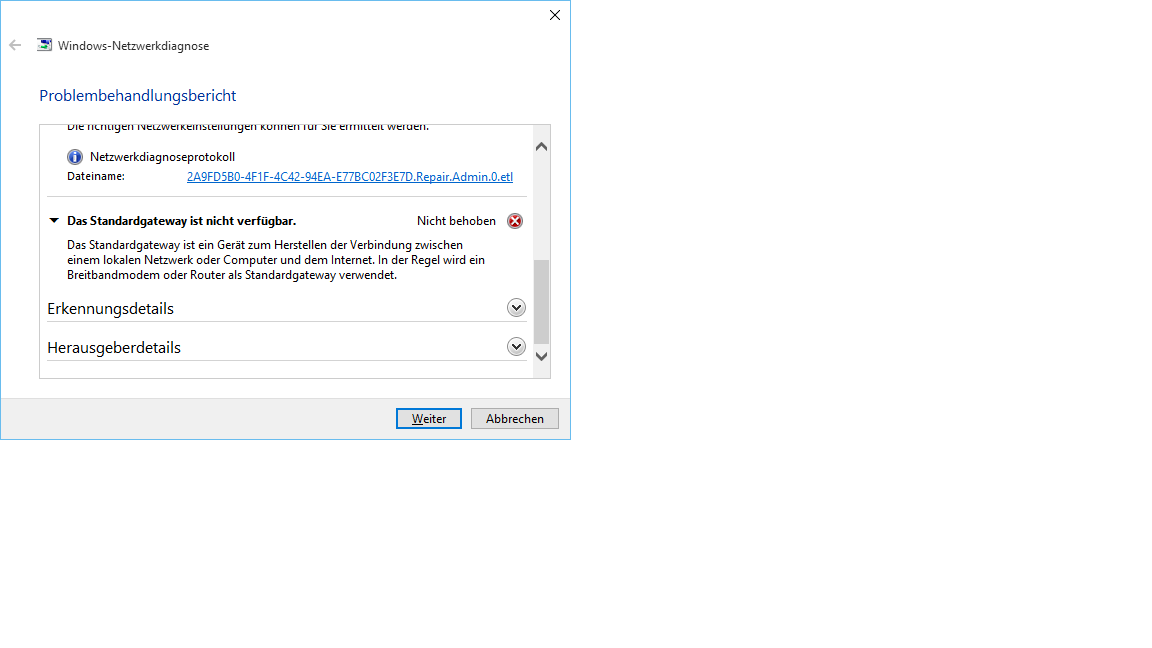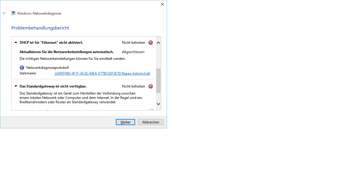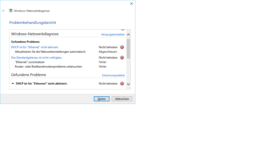 Der HDCP und Standardgateway sind nicht Verfügbar