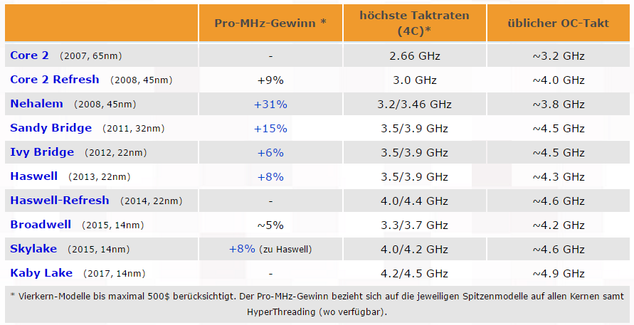 Beim hier im Forum viel diskutierten i7-7700K liegt der Turbotakt standardmäßig schon bei 4,5 GHz (ein Kern) bzw. sehr aggressiven 4,4 GHz auf allen Kernen.