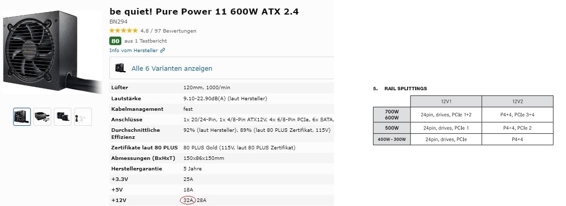 grakas mit zwei 6/8pin bzw 12VHPWR-anschluss hängen beim PP12 M an beiden 12V-rails. edit: siehe #11485.
