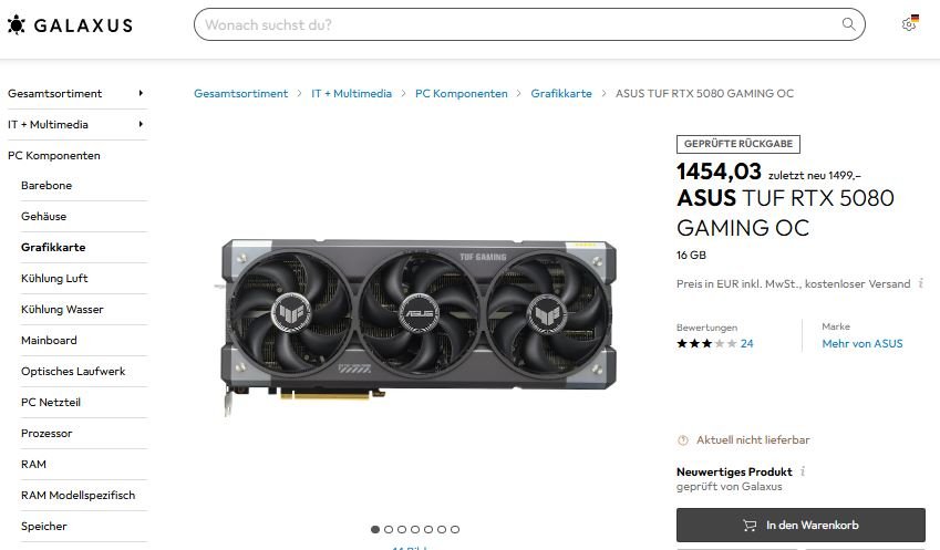 Eben war eine Rückgabe und 1454€ würde ich jetzt auch nicht als großes Angebot bei der 5080 sehen, ich glaube wir können uns darauf einigen, dass die Karten aktuell halt massiv zu teuer sind.