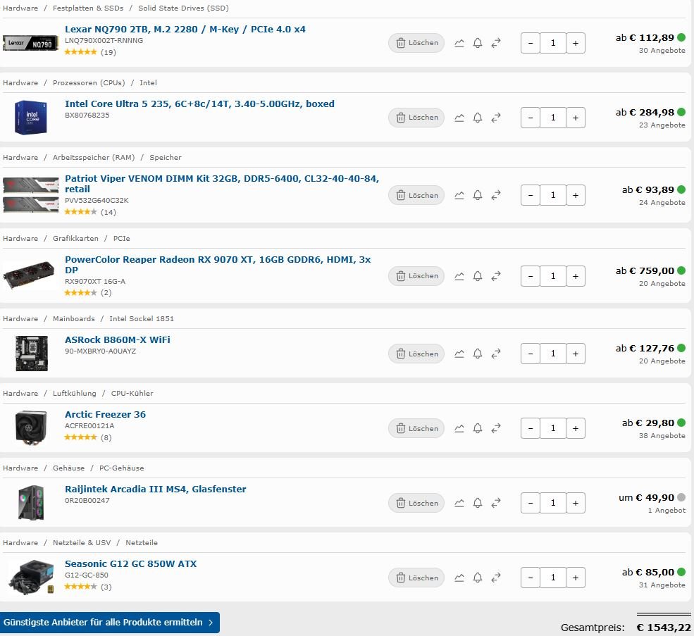Grob kann man sagen wir waren mit 7800X3D (9800X3D war da noch nicht draußen) und 4070 Ti Super unter 2000€, mit 4080 S leicht drüber.