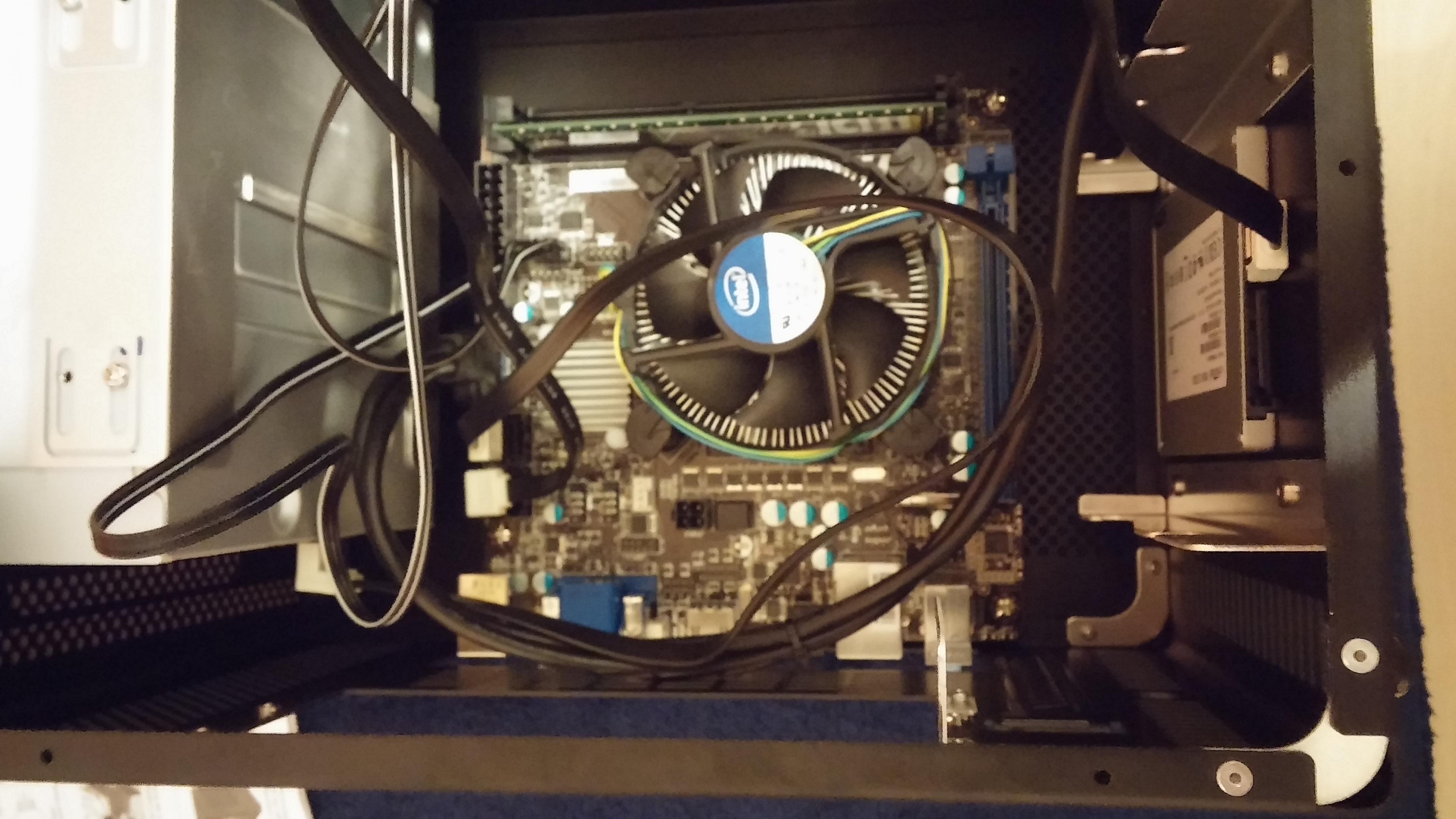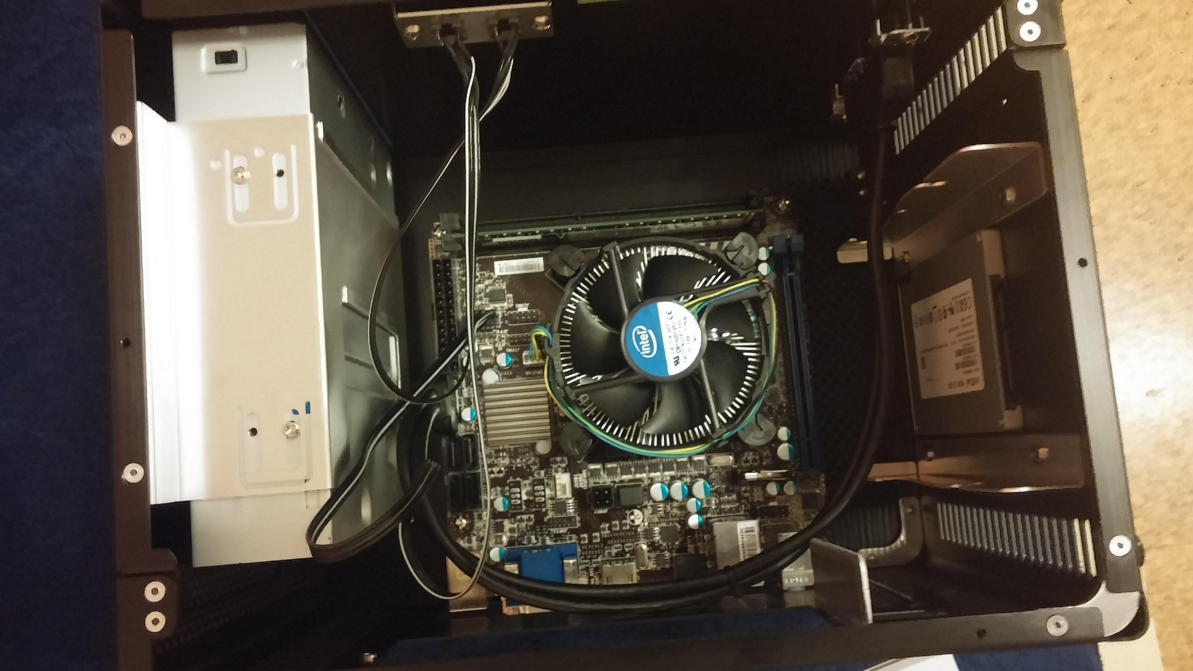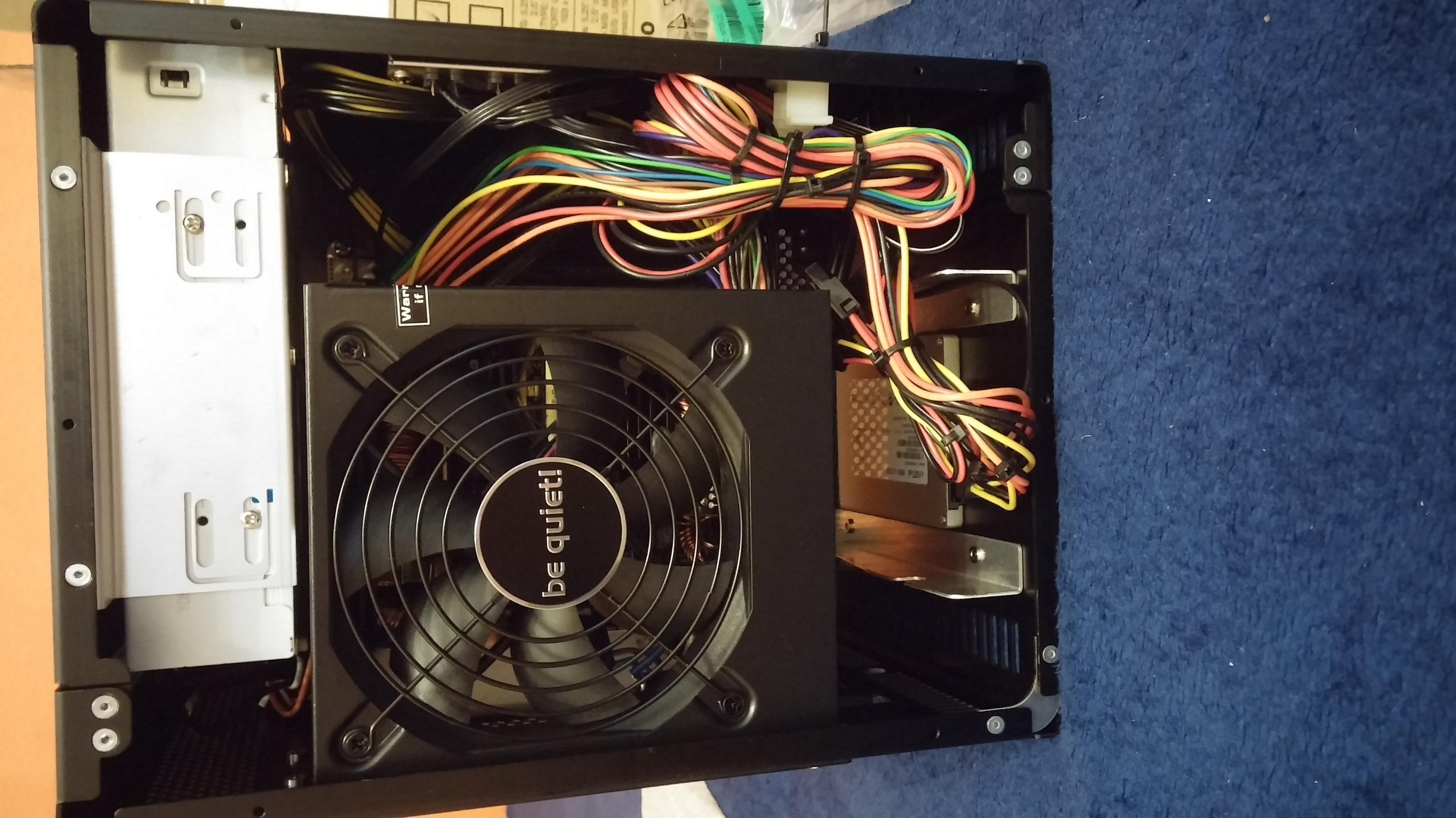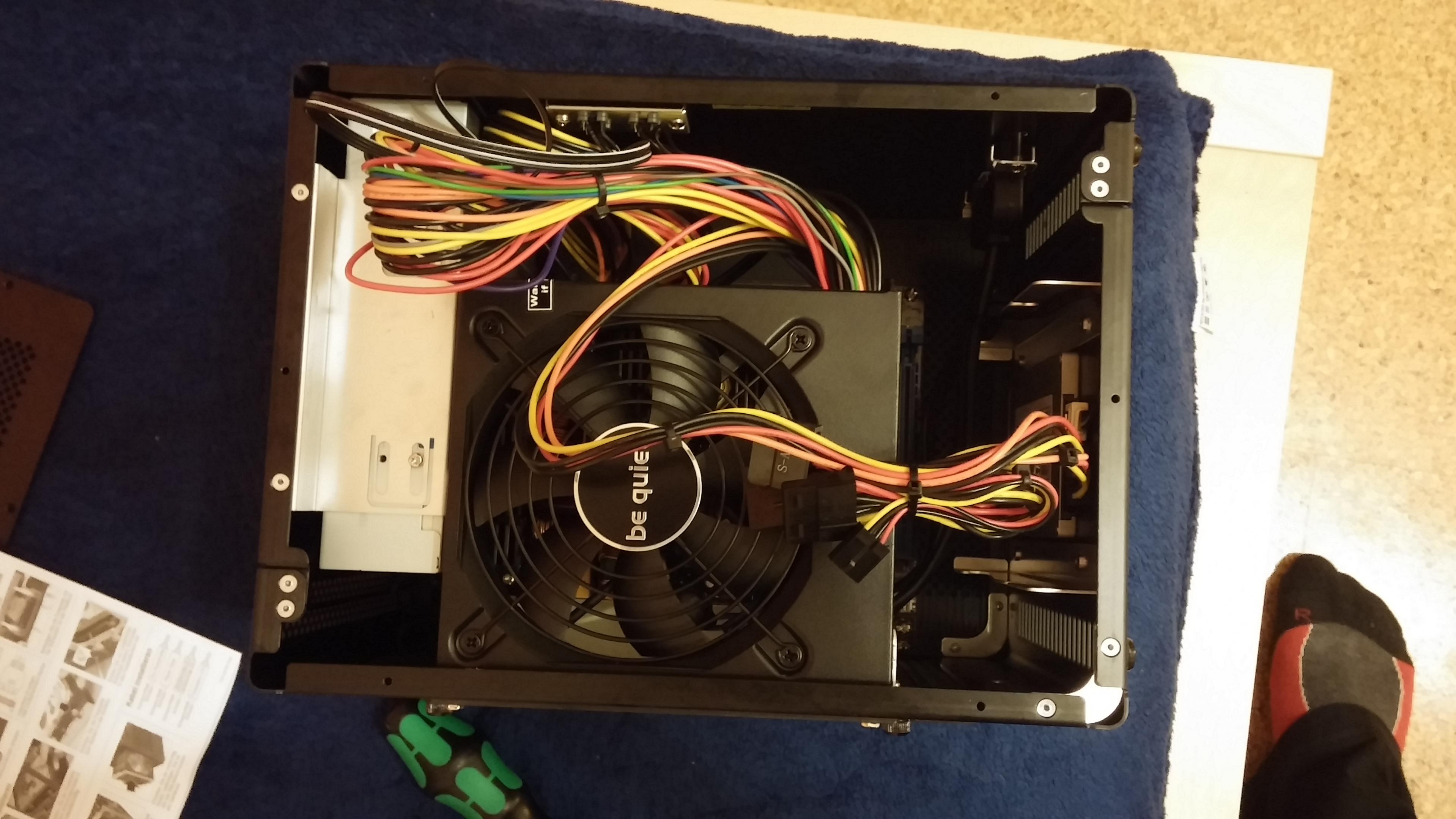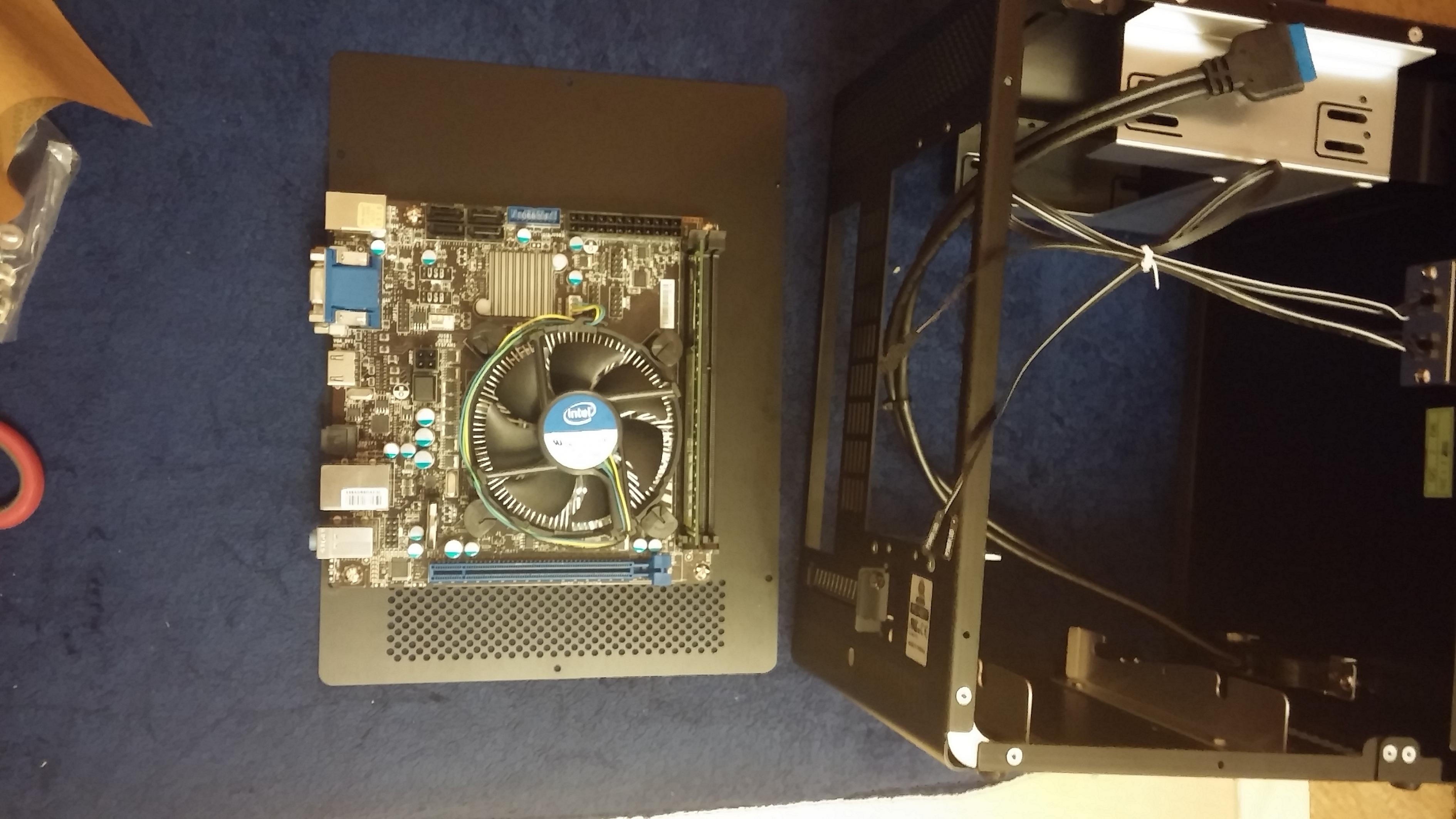 Es wäre auch möglich die SSD zu drehen und die SATA Kabel unter dem Board her zu führen, wenn man noch ein nicht abgewinkeltes Kabel da hat, später den SATA Strom zu installieren wird dann aber sehr schwer und die Kabel sind im Weg.