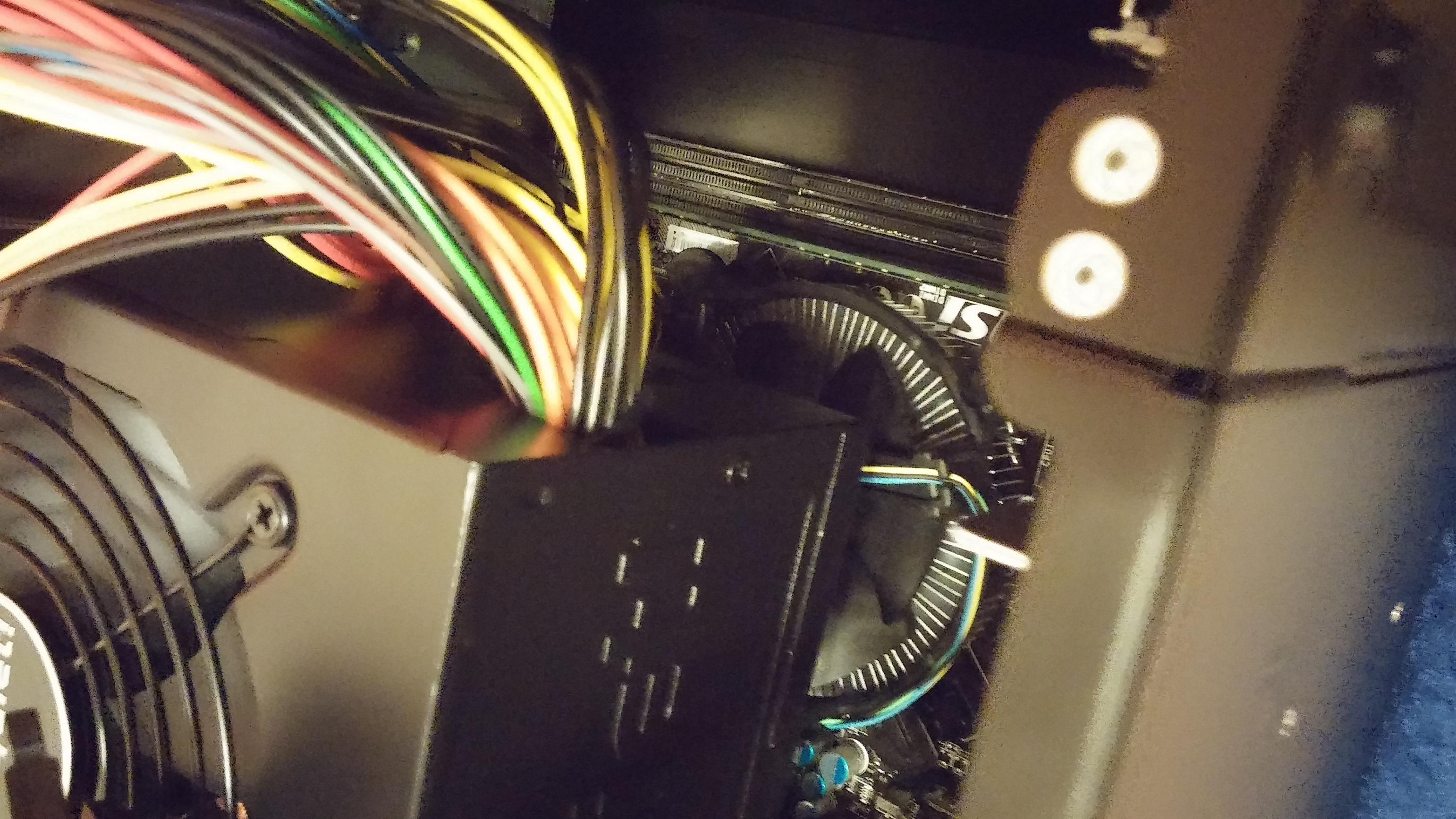 Die Kabel für die Frontanschlüsse und SATA müssen am Boxed Kühler vorbei geführt werden und sollen nicht darüber liegen.