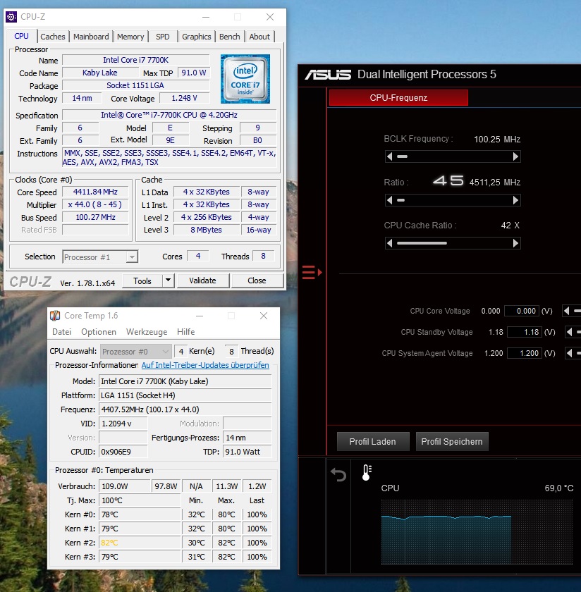 Das ASUS Tool zeigt mir nur 69°C an, Ich vermute das CoreTemp die Temperatur zu hoch ausliest.