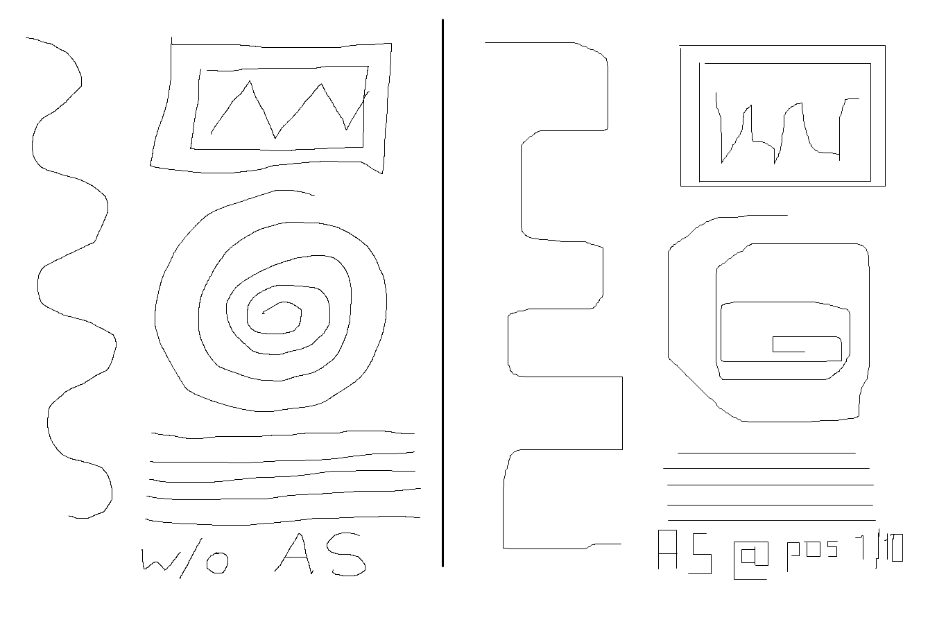 usopia schrieb:Aber wo wir gerade bei AngleSnapping sind: die Funktion "einstellbares AS" bei der Rival hätte Steelseries auch gleich ganz weglassen können. Schon auf der ersten Stufe (von zehn!) ist das AS so aggressiv, daß für mich ein sinvolles Zocken nicht mehr möglich ist. Eine Diagonale Linie bekommt man überhaupt nur noch hin, wenn man die Maus sehr schnell bewegt. Ab Stufe 3 geht eigentlich gar nichts mehr. Habe auch mal ein Vergleichsbild gemalt: