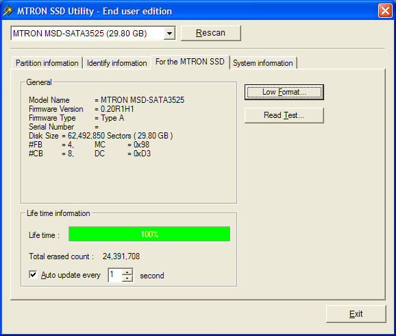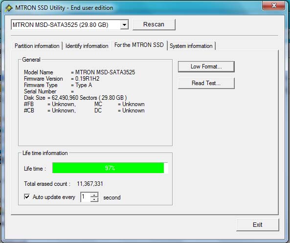 So, nach längerer Pause liefer ich mal wieder Daten zu meiner Mtron Mobi: