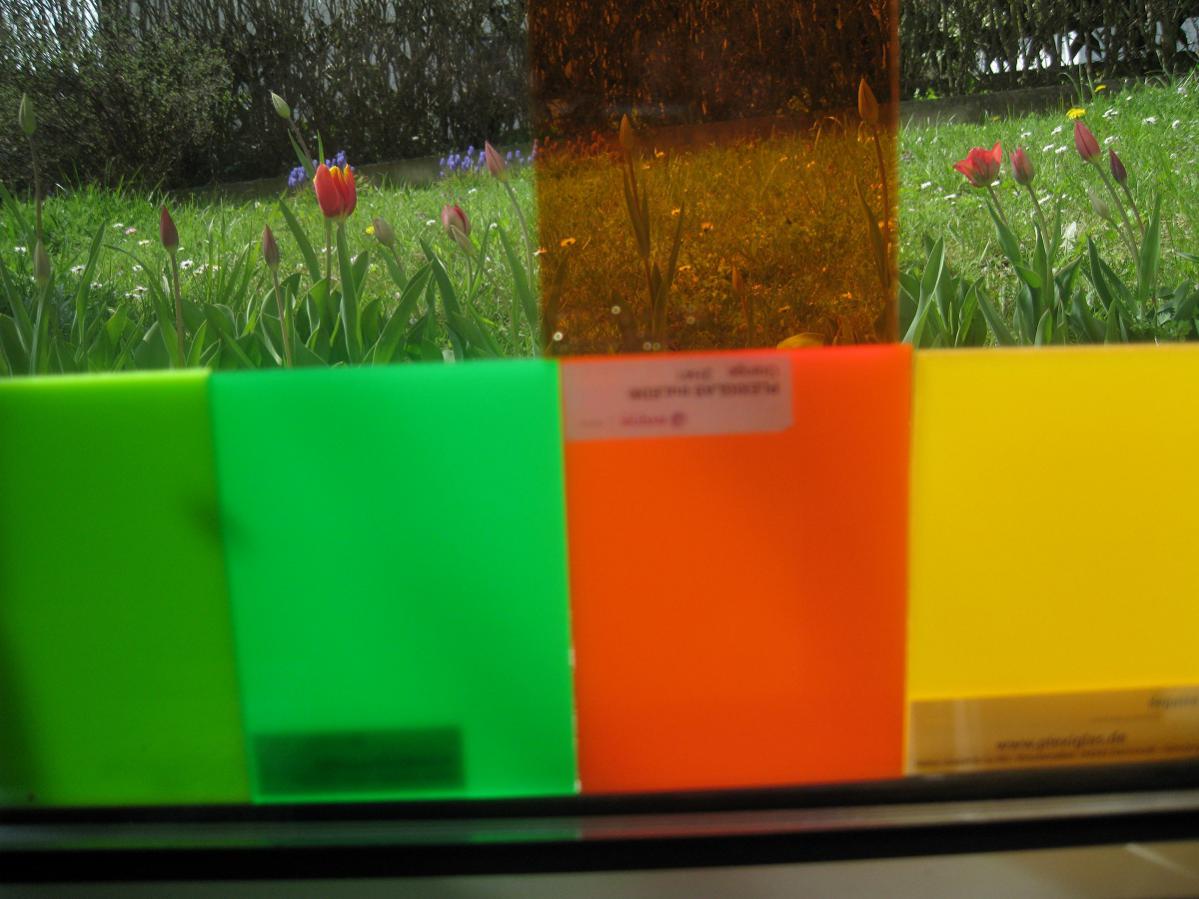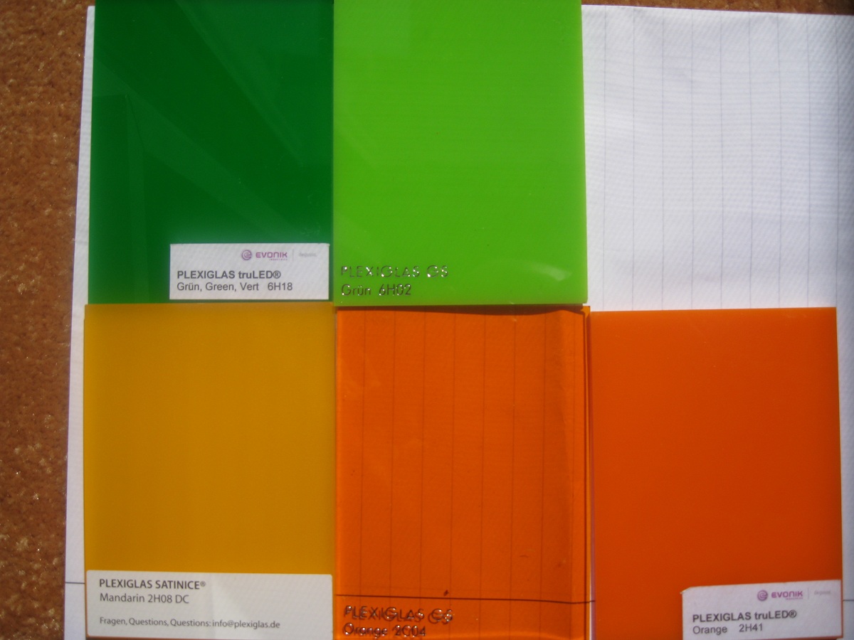 Von meinen schönen Pleximustern hab ich mich nun für "Mandarin Satinice" (das Gelbe) entschieden und mein Gras sollte "Kiwi Satinice" bekommen (hier nicht zu sehen aber ähnlich dem hellgrün).