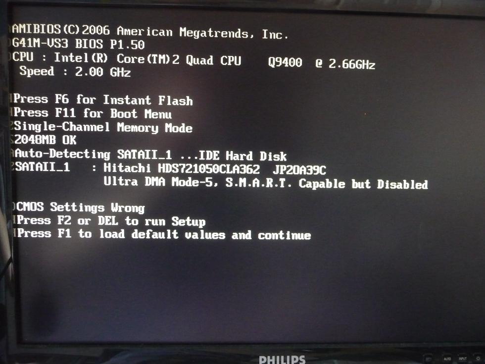 Hier ein Bild. Habs nach dem 3. Kaltstart geschafft... Das Bild kam bereits 3 mal. Habe als 1. F11 und danach F2 gedrückt. Dann war ich im BIOS und bin einfach über die ESC taste raus gegangen.