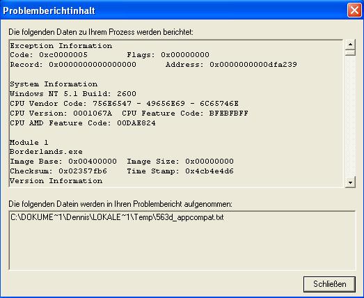 jetzt komme ich bis zum schwarzen Bildschirm wo er das Spiel laden soll. Danach wird das Spiel beendet, weil folgendes Problem festgestellt wurde.. : folgende Screens...