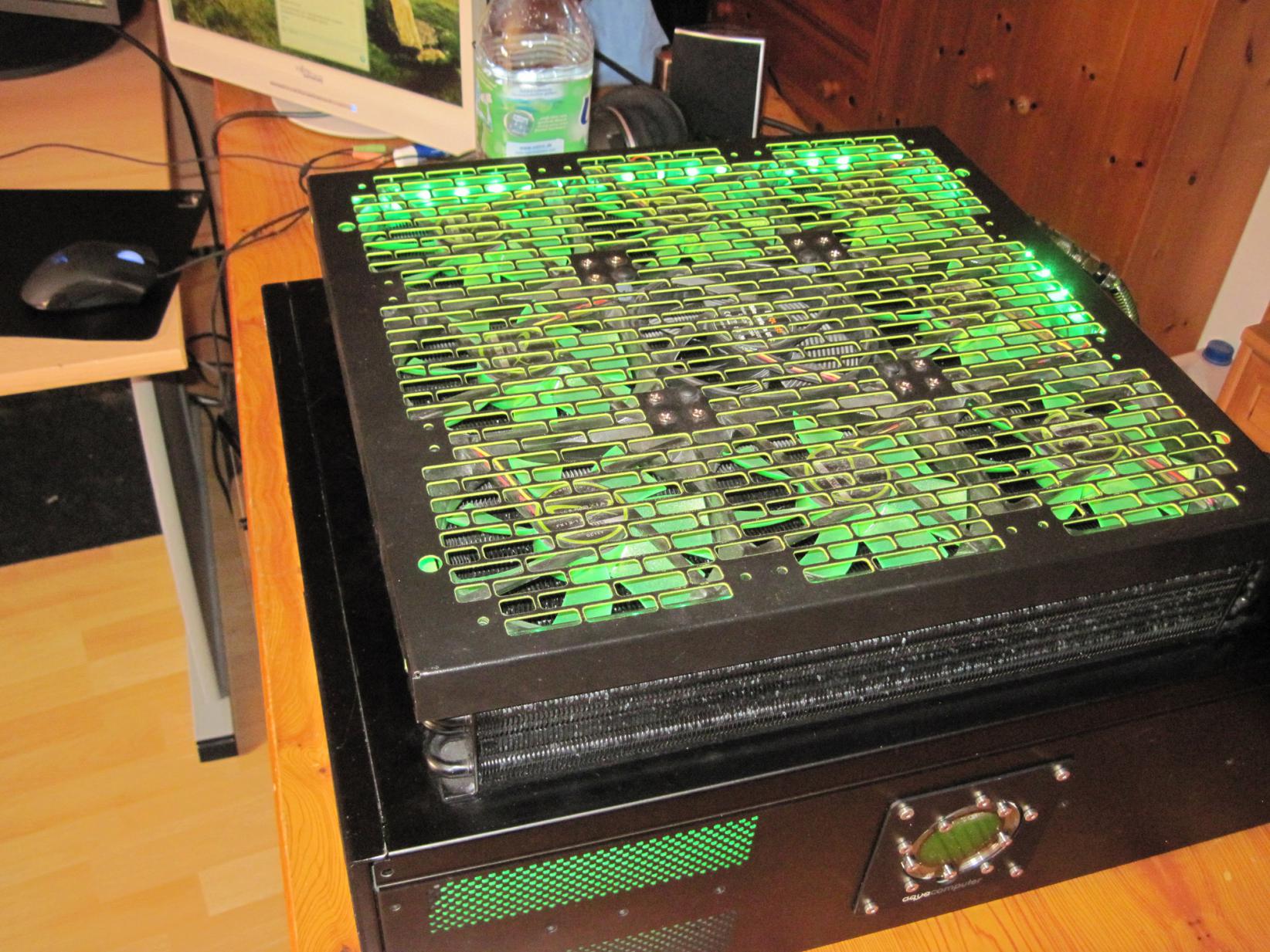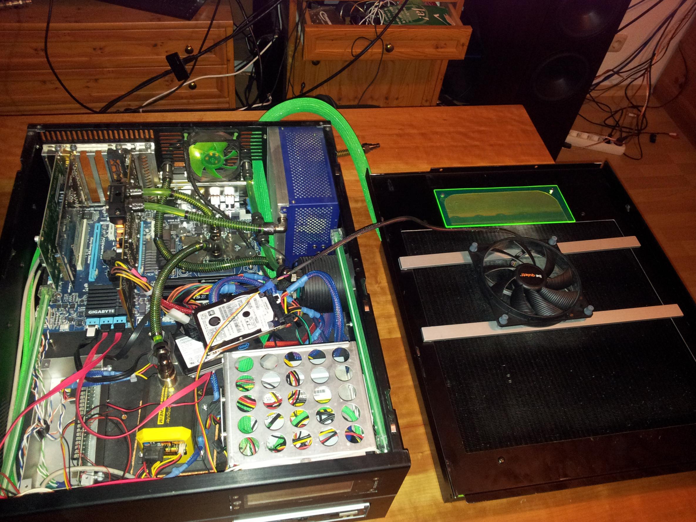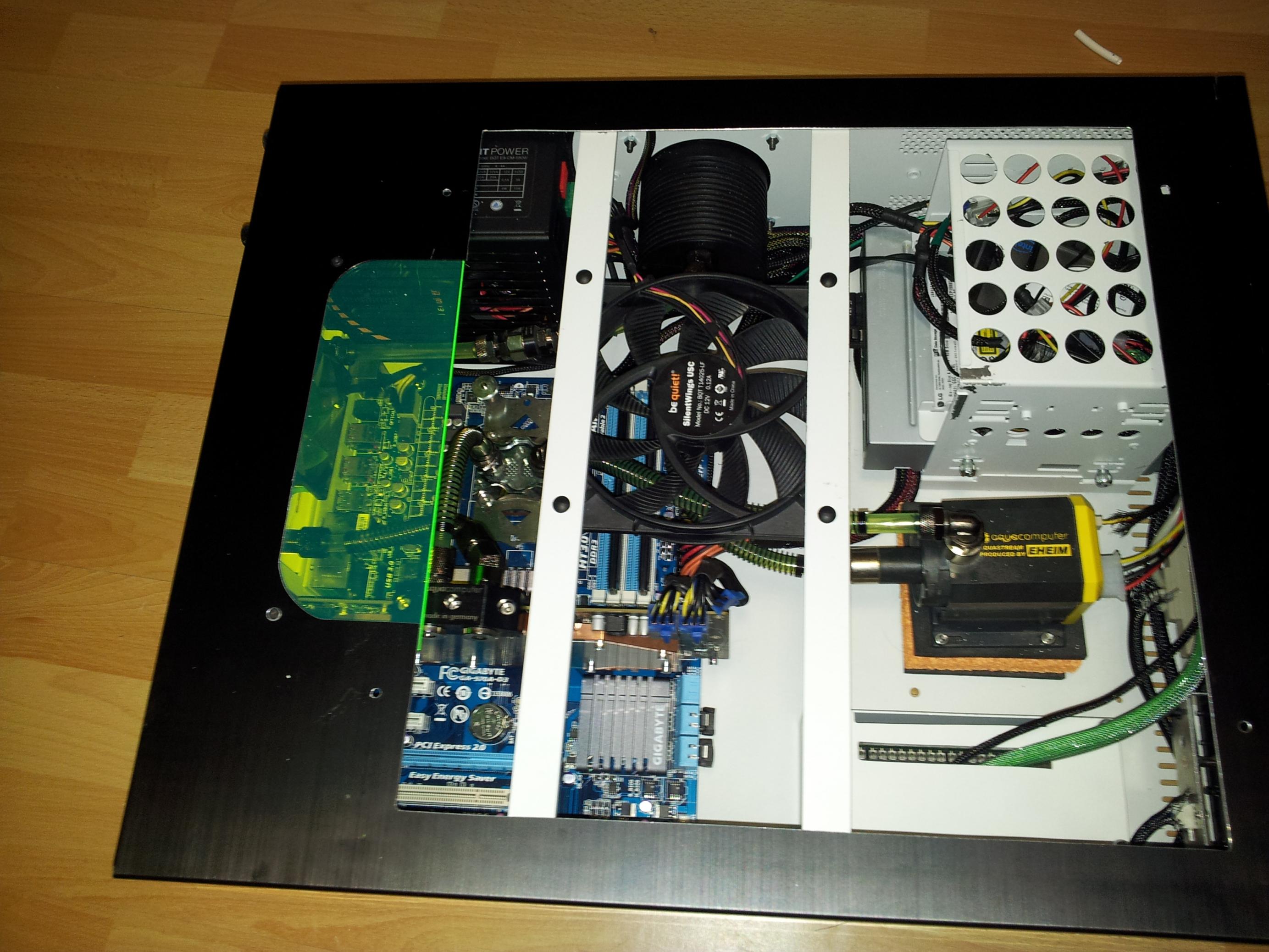 Ich hab mir jetzt ein BeQuiet Straight Power 580W gekauft. Daher muss ich meinen ganzen Wasserkreislauf neu aufbaun. Ich hab grad beschlossen diese Gelegenheit zu nutzen, um mal wieder bissl was zu basteln. Mal sehn ob mir ein paar Sachen einfallen, die das ganze noch etwas aufwerten.