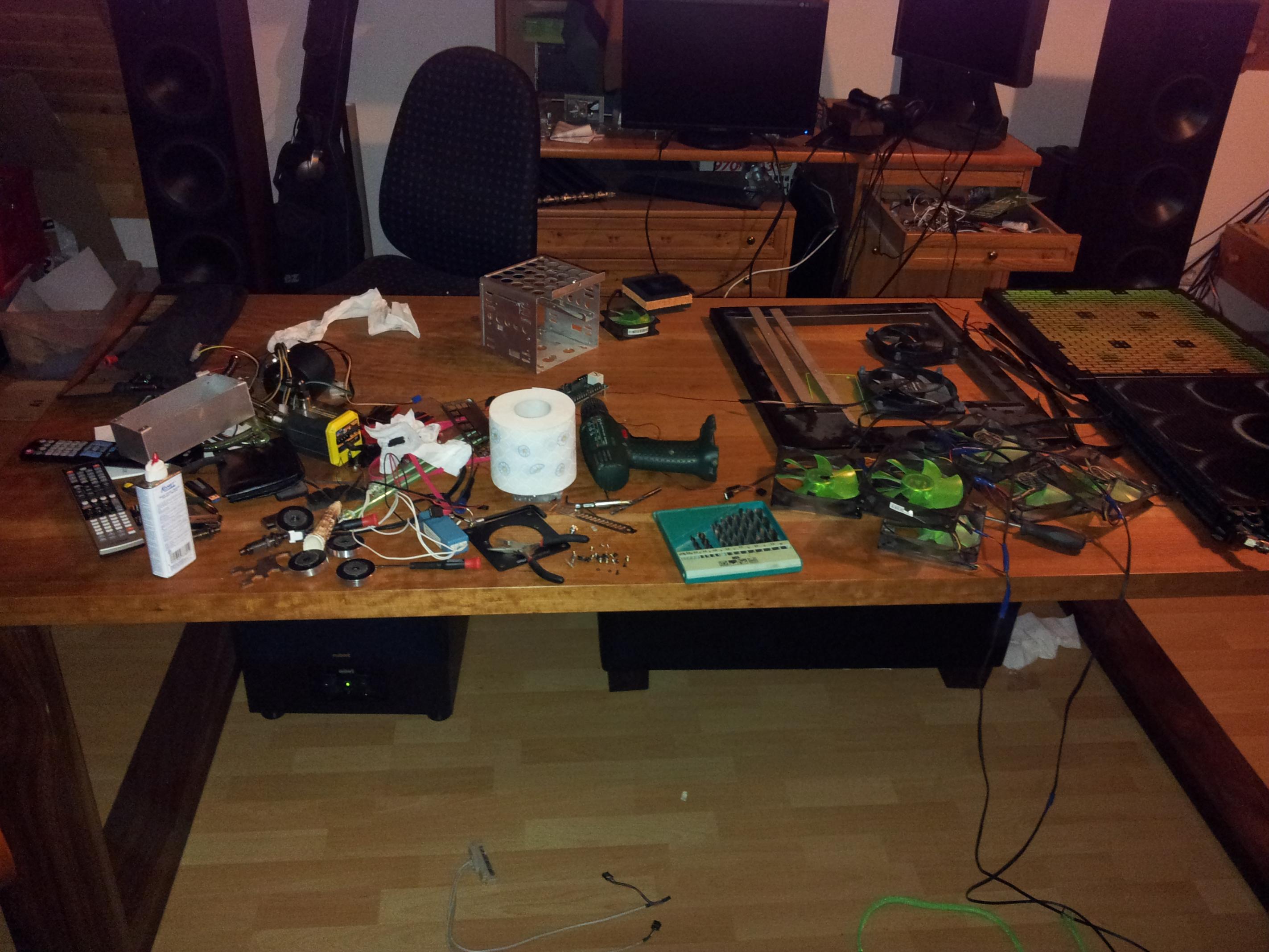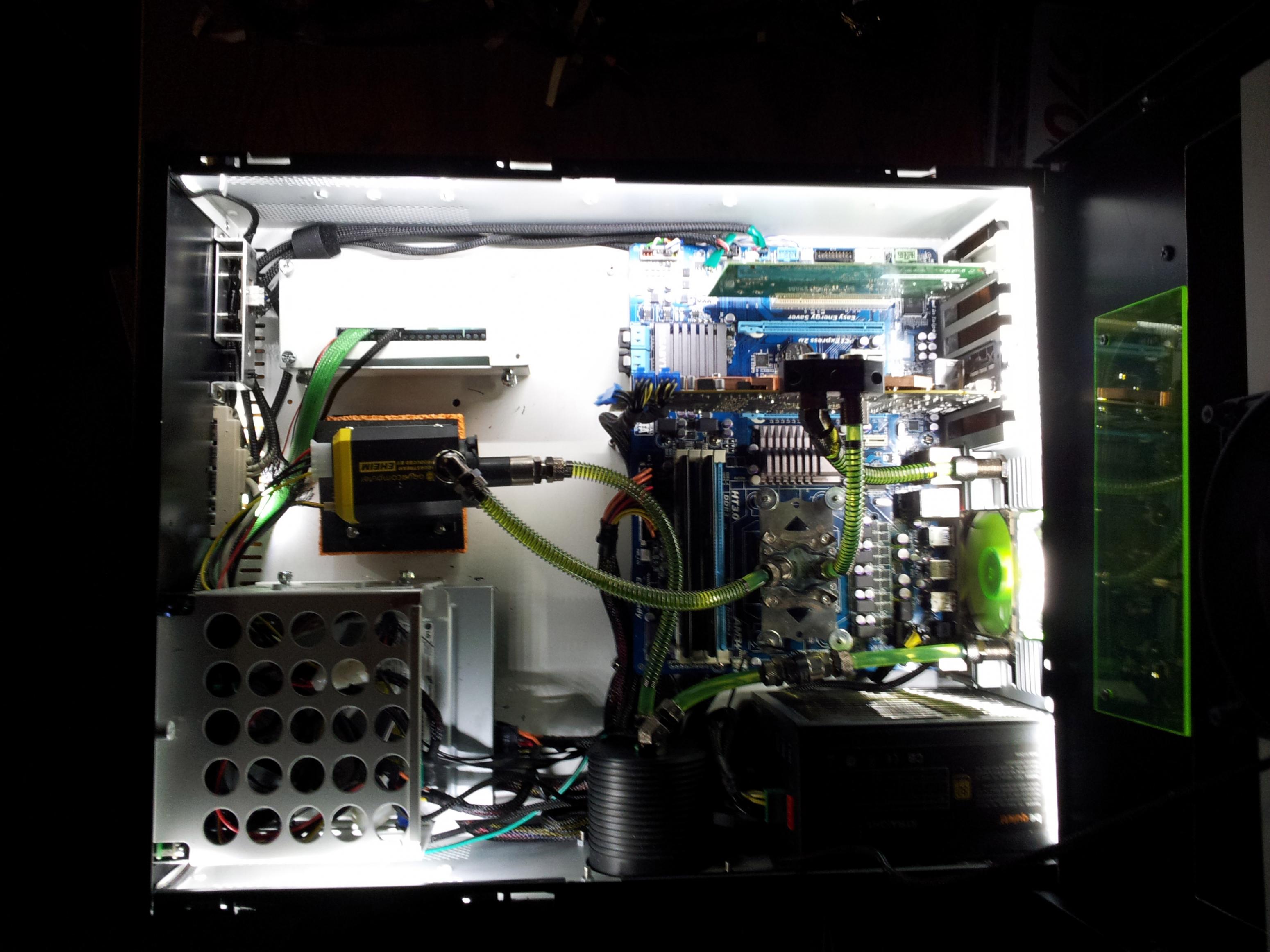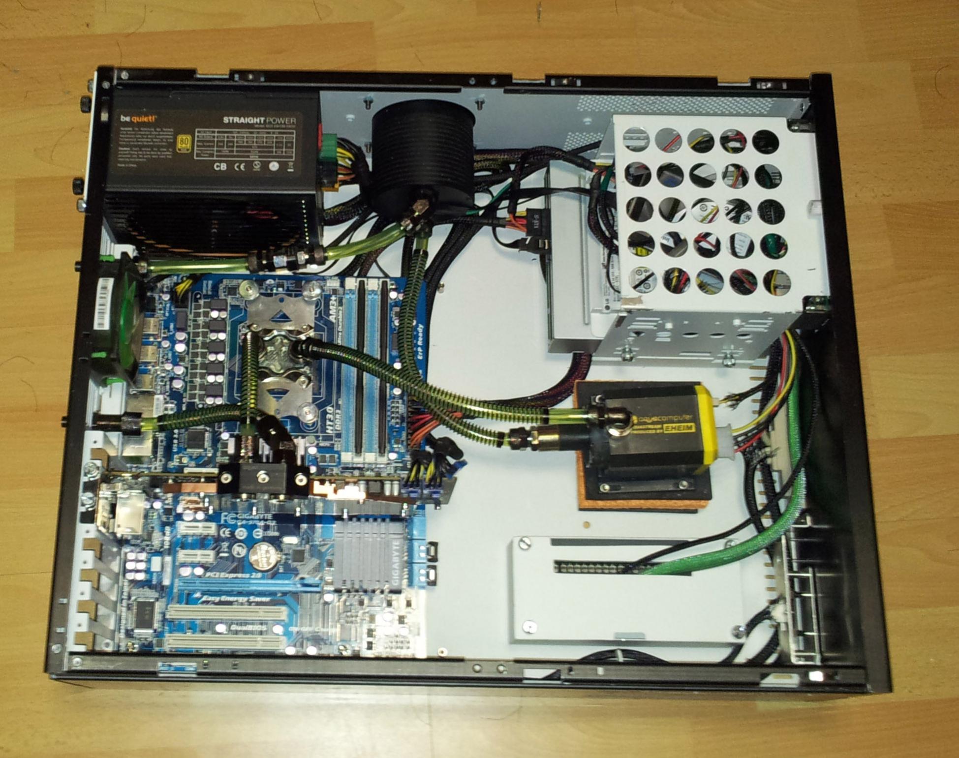 Ich hab mir jetzt ein BeQuiet Straight Power 580W gekauft. Daher muss ich meinen ganzen Wasserkreislauf neu aufbaun. Ich hab grad beschlossen diese Gelegenheit zu nutzen, um mal wieder bissl was zu basteln. Mal sehn ob mir ein paar Sachen einfallen, die das ganze noch etwas aufwerten.