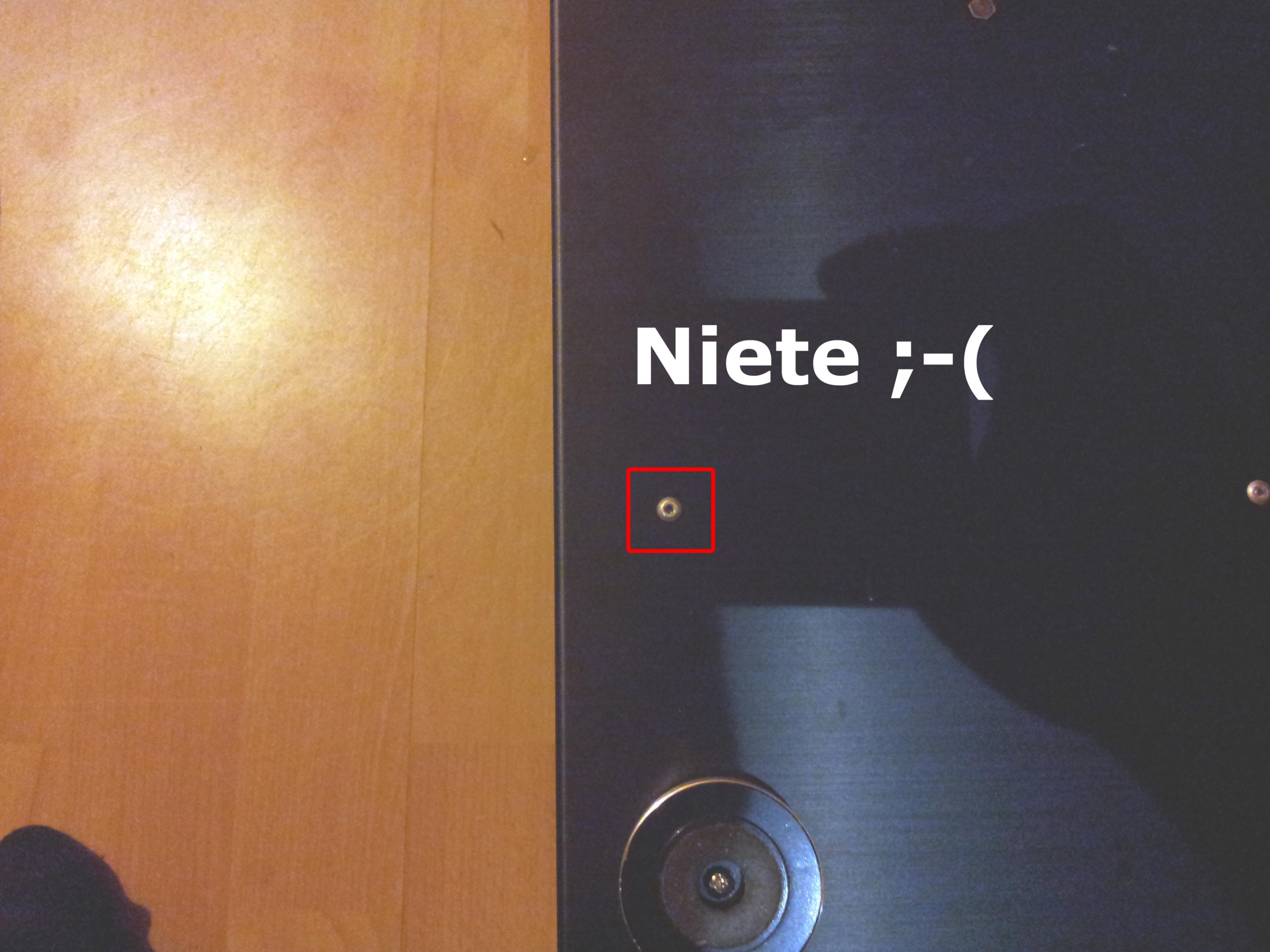 Die zerstörten Nieten waren kein Problem, weil ich in die Löcher einfach die groben Gehäuseschrauben mit etwas Gewalt reindrehen konnte.