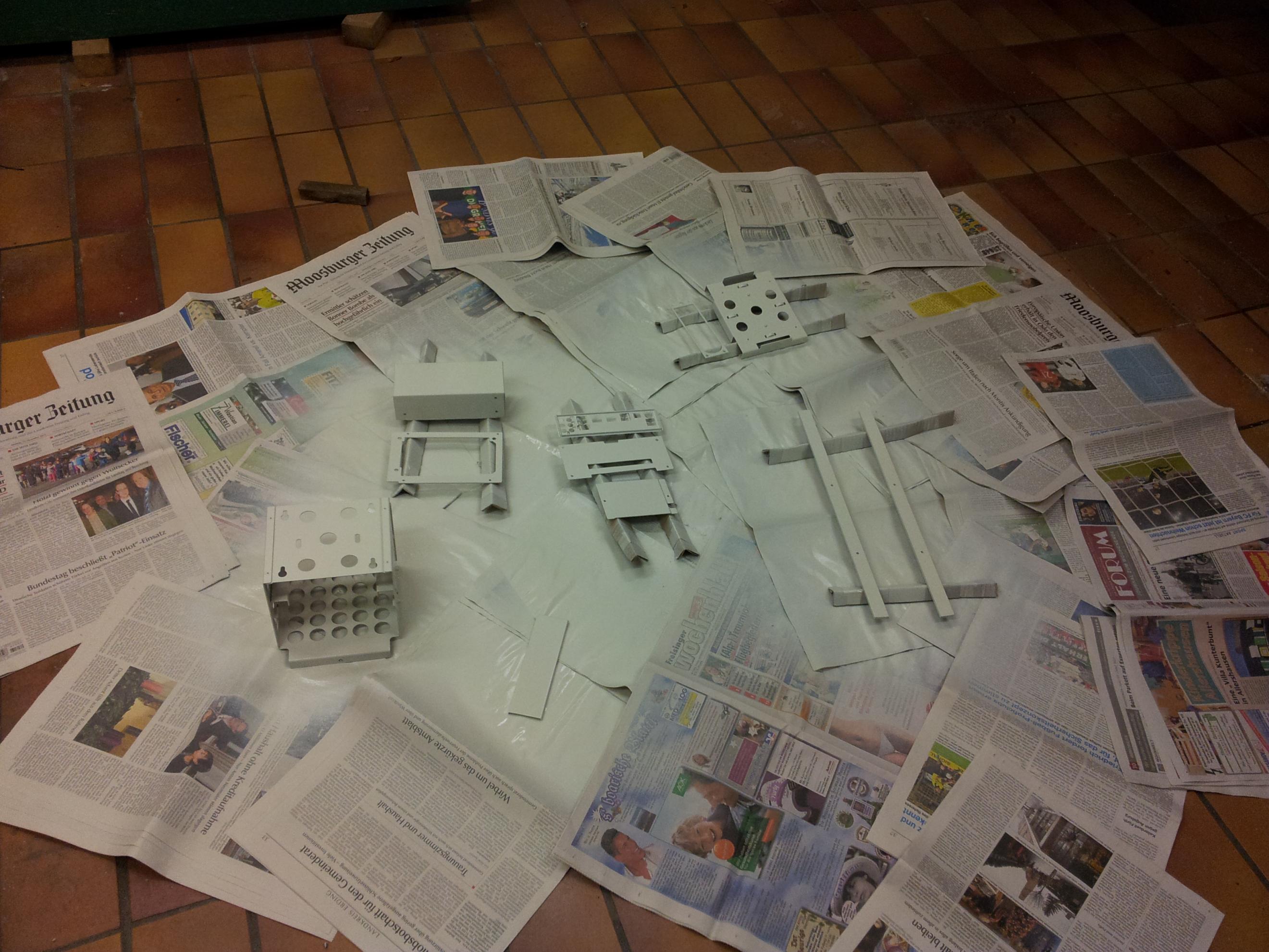 So mitm lackieren bin ich jetzt fertig. Ist leider nur eine Schicht geworden, weil ich nur weisse Spraydosen auf Lager hatte. Naja ist eh nicht für die Ewigkeit gebaut ;-)