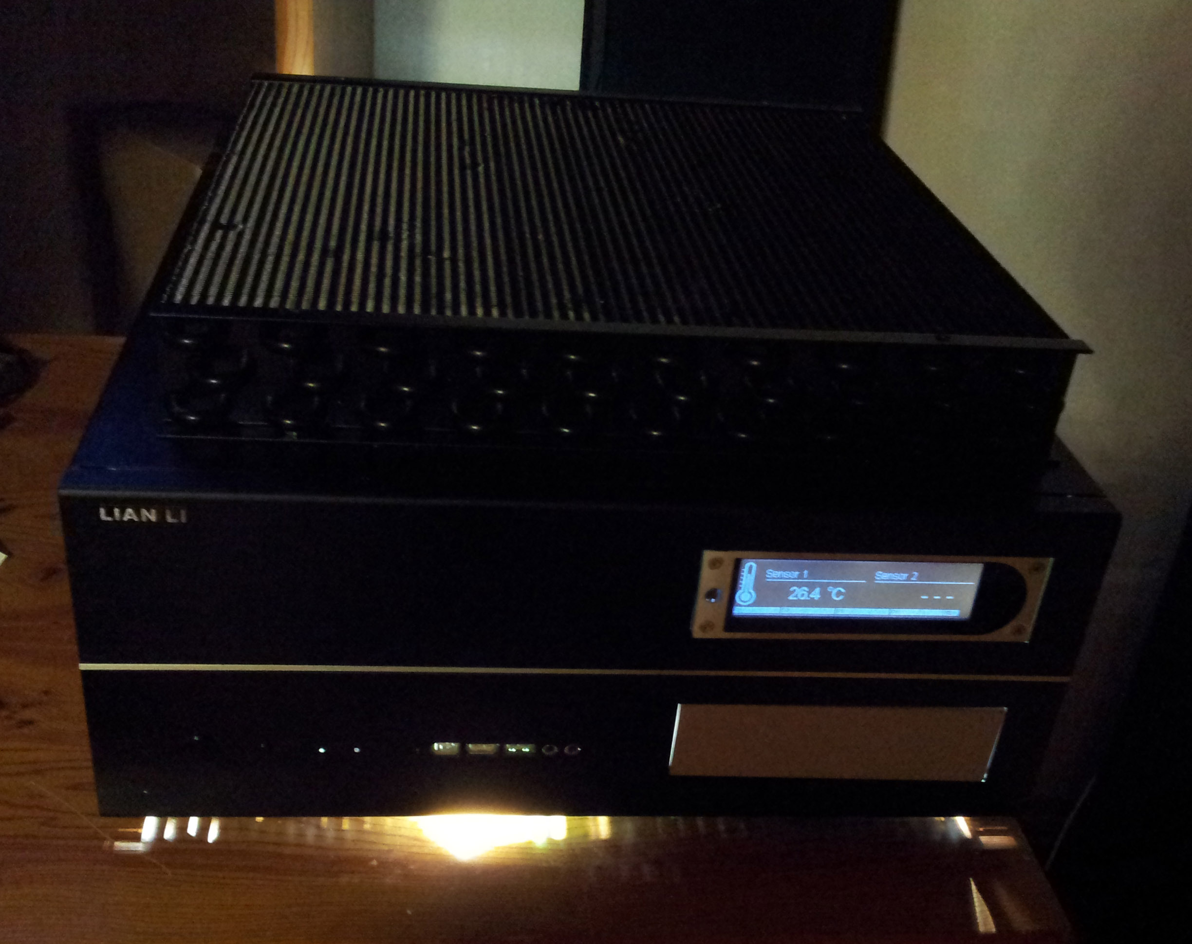2 * 30cm Kaltlichtkathoden am unteren Ende der Lüftungsschlitze montieren, so dass die Ausleuchtung gleichmäßig ist