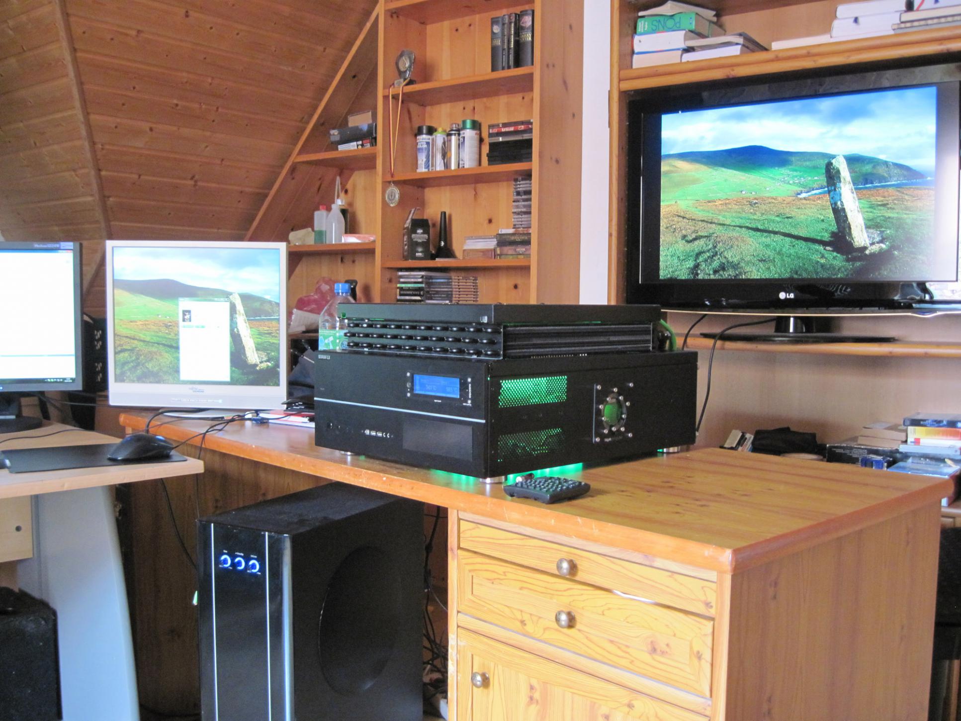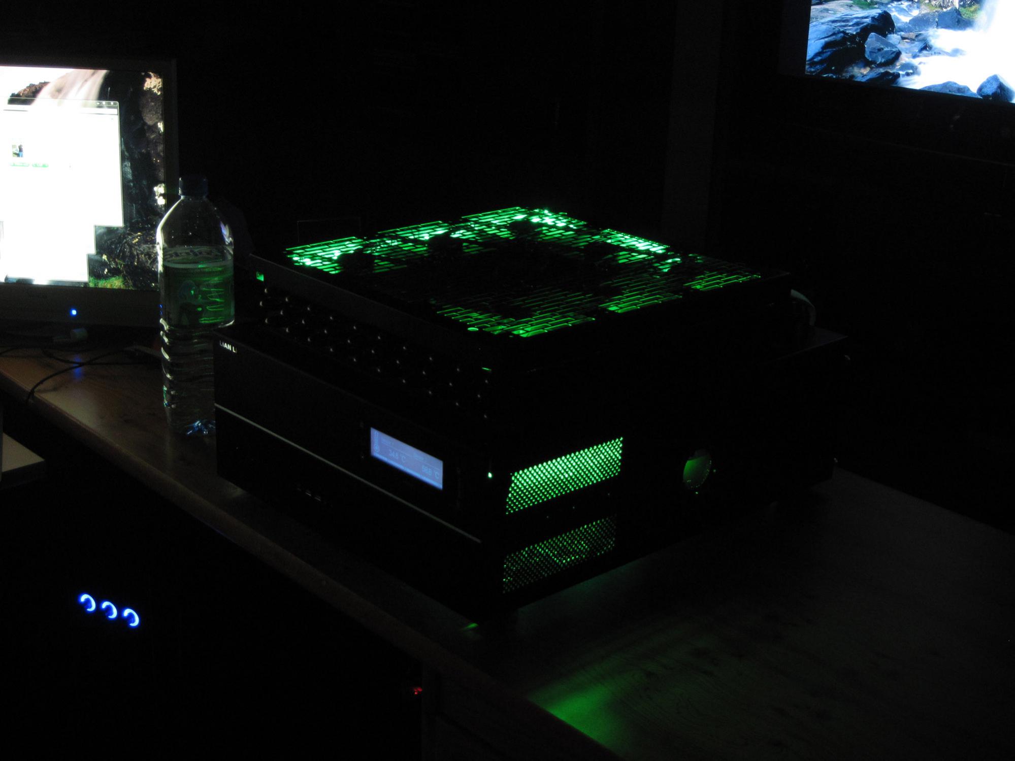Ich denke nicht dass das schön aussieht, weil ich wenndann möchte, dass nur der Text grün ist. Auf den Fotos sieht das weiss etwas bläulich aus - in der Realität sieht das ganze nichtmal so schlecht aus! Mein PC kann ja alternativ auch weiss leuchten per Knopfdruck bzw. Aquaero 5 Profilauswahl!
