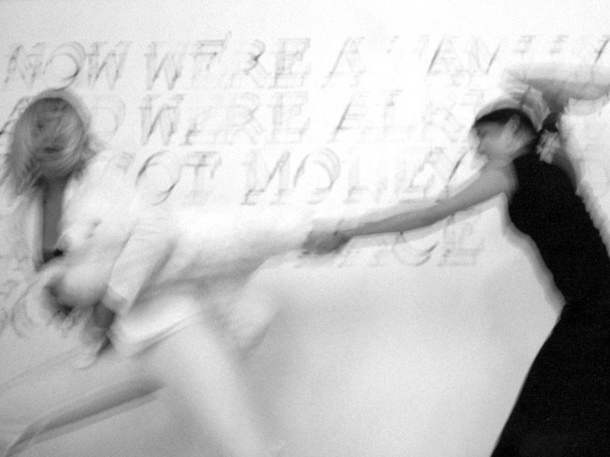 Hier ein paar Ergebnisse von einem "Shooting" bei einer Freundin von mir (die ist auf den Fotos in weiß zu sehen)... Wir hatten die Idee eigentlich eher, um mal ihre beschriftete Wand abzulichten, bevor sie aus ihrer Wohnung ausgezogen ist... da haben sich S/W-Fotos natürlich angeboten. Geschossen wurden die Bilder mit einer analogen Canon EOS 300... geliehen von meinem Vater (ich bin zu arm, um eine eigene Kamera zu besitzen) und S/W-Filmen aus dem dm-Markt... Also nichts großartig professionelles. Und da ich wenig Erfahrung mit Fotografie habe, haben wir das meisten im Automatik-Modus geschossen, mit möglichst langer Belichtung, damit der Blitz nicht angeht. Leider sind dann alle Bilder ohne Stativ nichts geworden, weil das Licht irgendwann einfach nimmer gereicht hat...