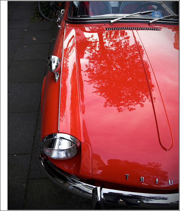 Und das mit dem von oben ist schon so gewollt. Ich mache öfters mal beides als Vergleich und mir gefallen durchweg die "von oben" besser. Vor allem bei dem roten Triumph ist das im direkten Vergleich irgendwie besser von der Wirkung her. War übrigens ein wunderschön restauerierter Wagen mit einem netten Besitzer, der mich sogar zu nem Oldtimertreffen eingeladen hat.