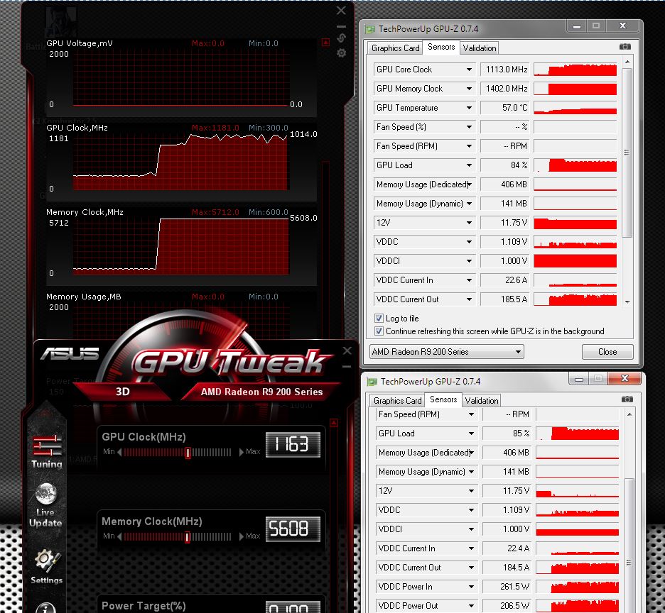 Ok, 86°C bei den Spannungswandlern klingen realistisch. Und wenn ich dich jetzt richtig verstanden habe, mit Übertaktung auf 1180/1440 @ 1.2V, oder ?