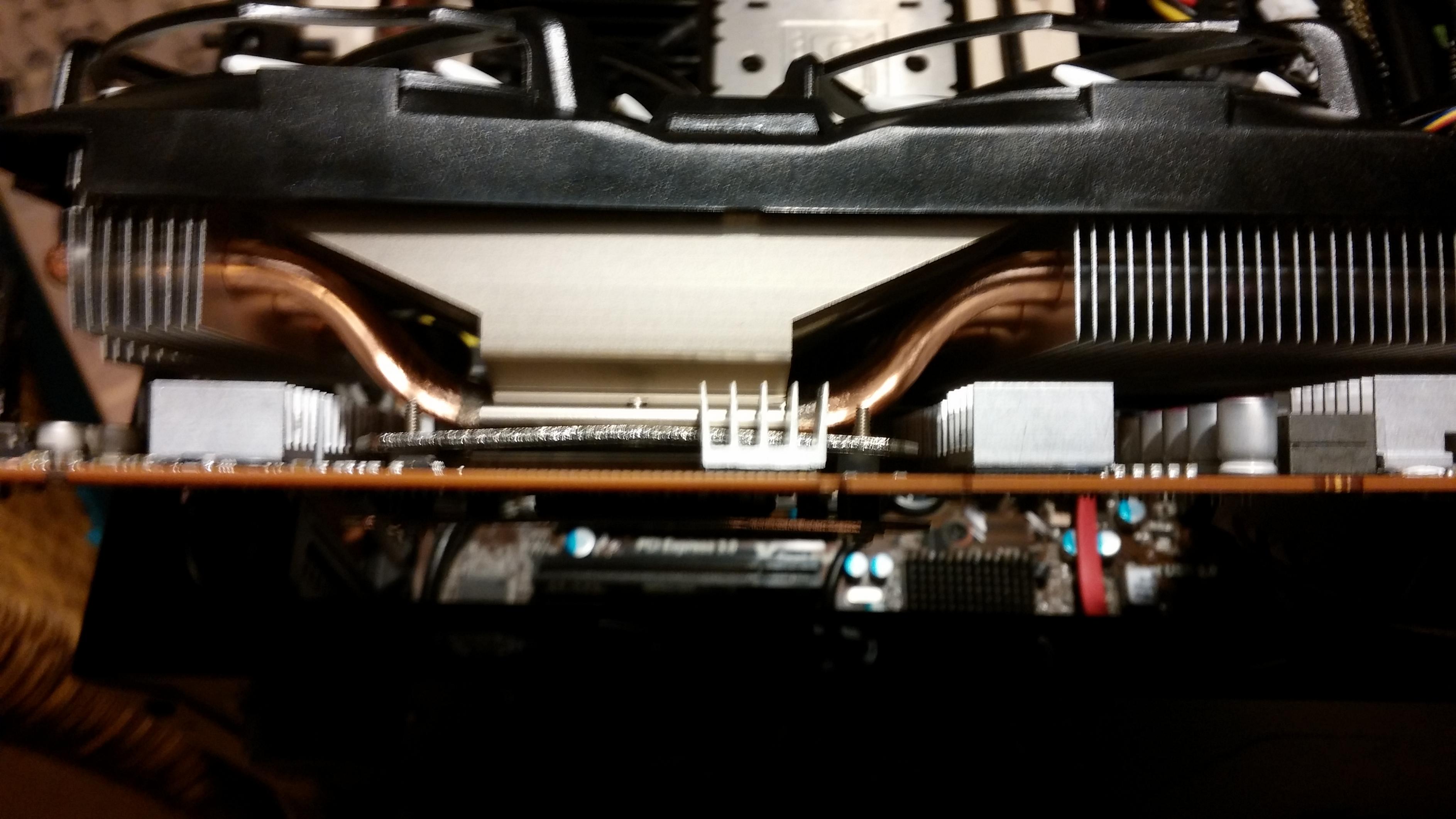 GPU dürfte nicht das Problem sein ,noch mal abnehmen die Spacer (gibt schwarz /weiß)überprüfen. Welcher unter die BackPlate und welcher unter die Montage Stäbe muss,weis ich nicht mehr .Mein AC war schon auf 3 Karten und die OriginalSP existieren schon lange nicht mehr:-)