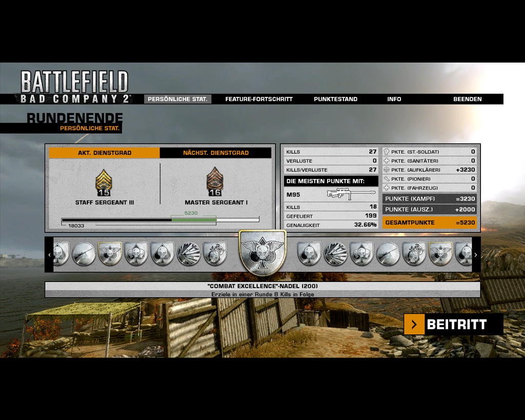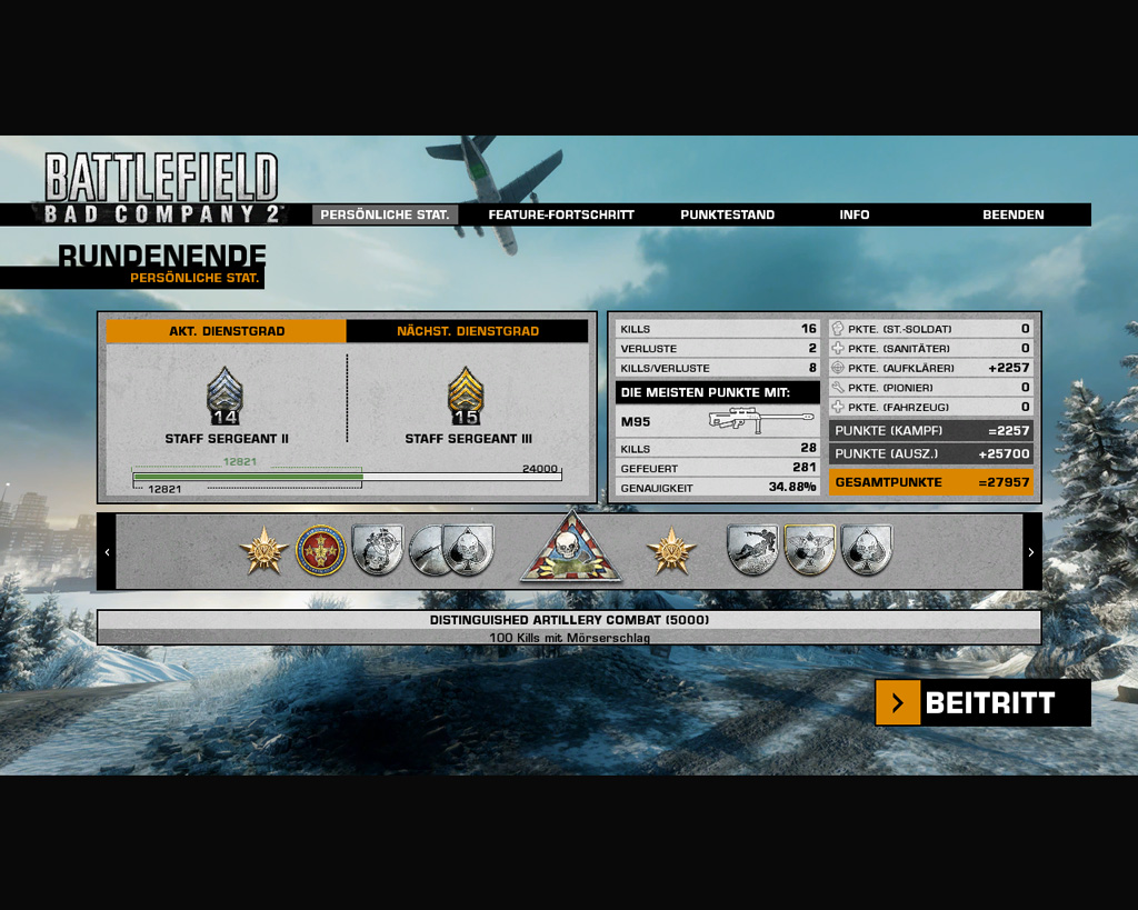 Wär schön, wenn ihr hier eure Recon-Erfolge posten würdet. In Form von Screenshots, Videos, aber auch Schilderungen. Einfach alles unmögliche und mögliche, dass ihr als Recon in BC2 schon geschafft habt! Was sind eure Lieblingswaffen? Beste K/Ds, Stats, Abzeichen, etc. pp. Es wäre auch cool, wenn ihr hier ein paar Strategien preisgeben würdet, gute Sniperspots... ihr wisst schon.