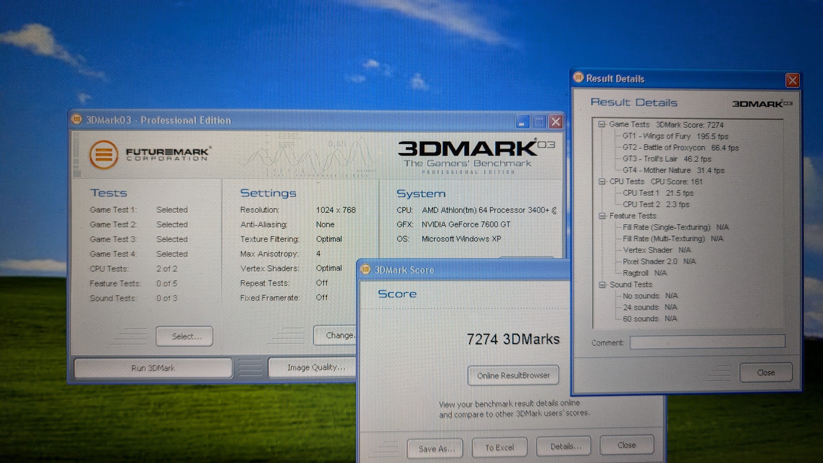 Das Board hat einen vollen Recap bekommen (passenderweise mit blauen Polys) und wurde inzwischen mit Age of Mythology und Max Payne zünftig eingeweiht.