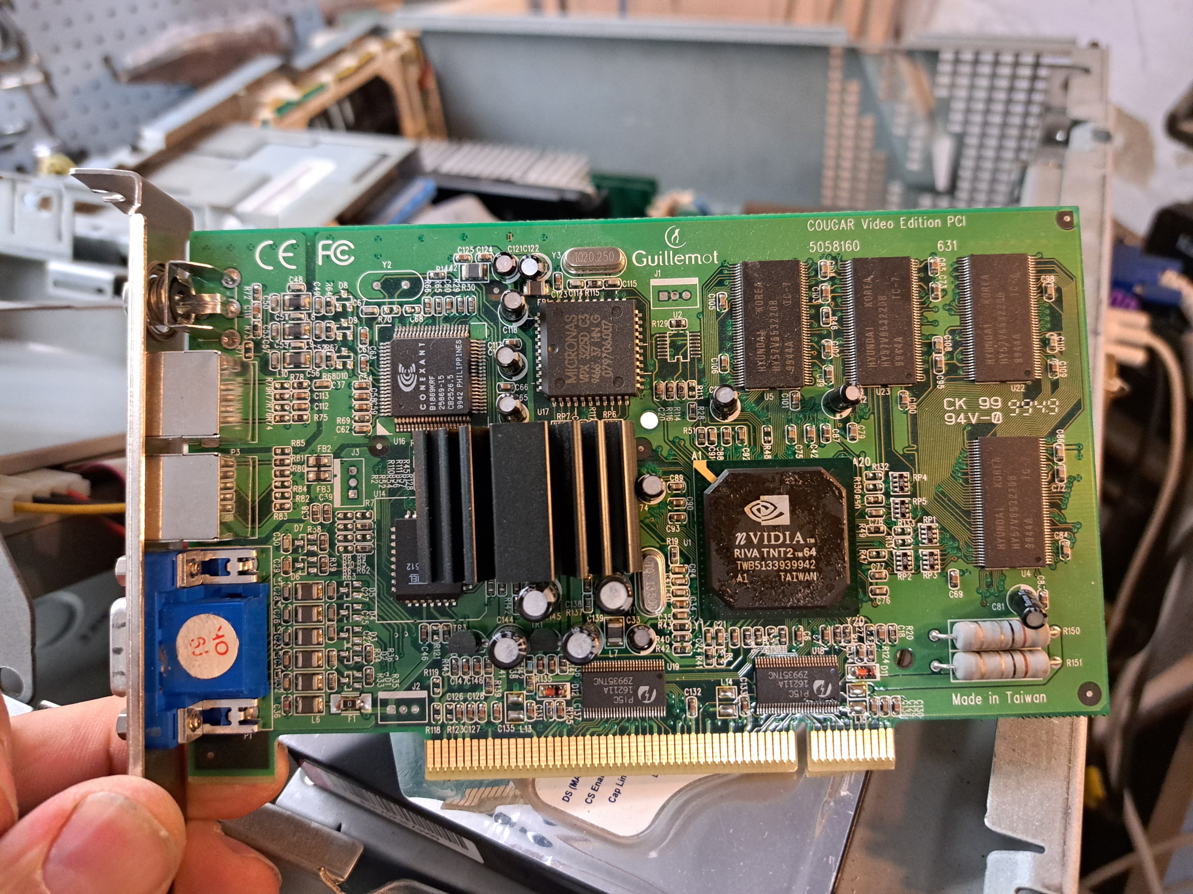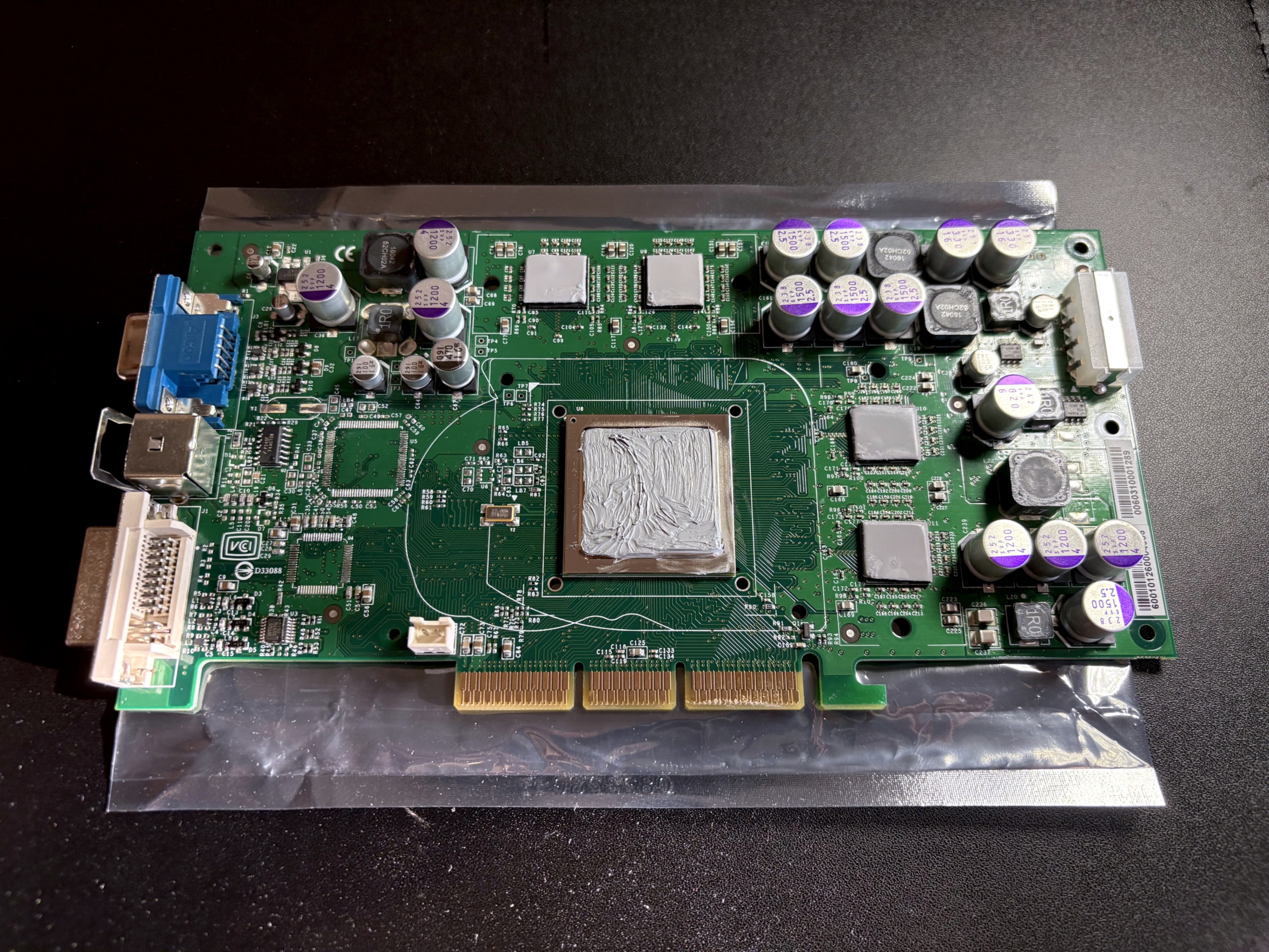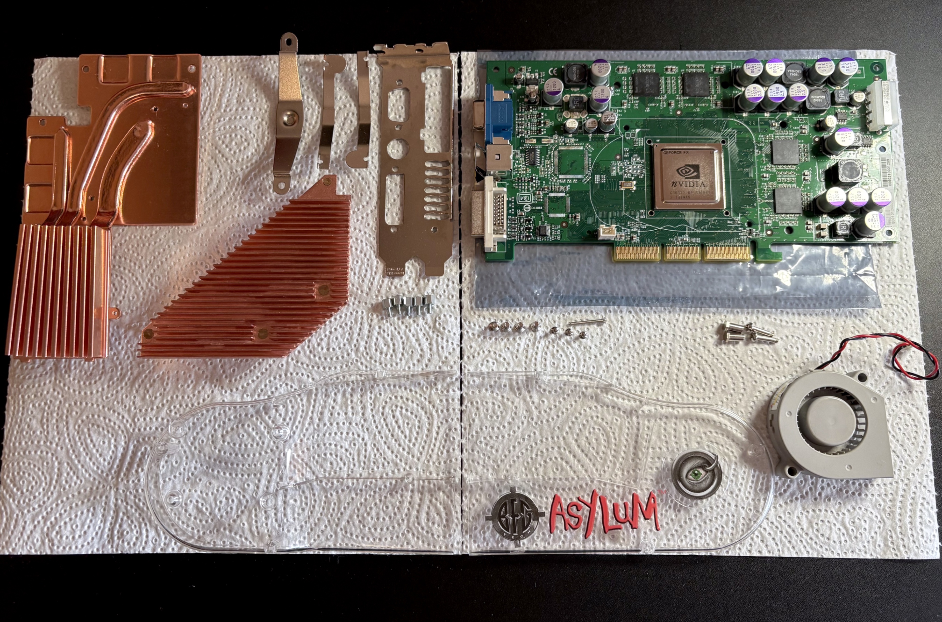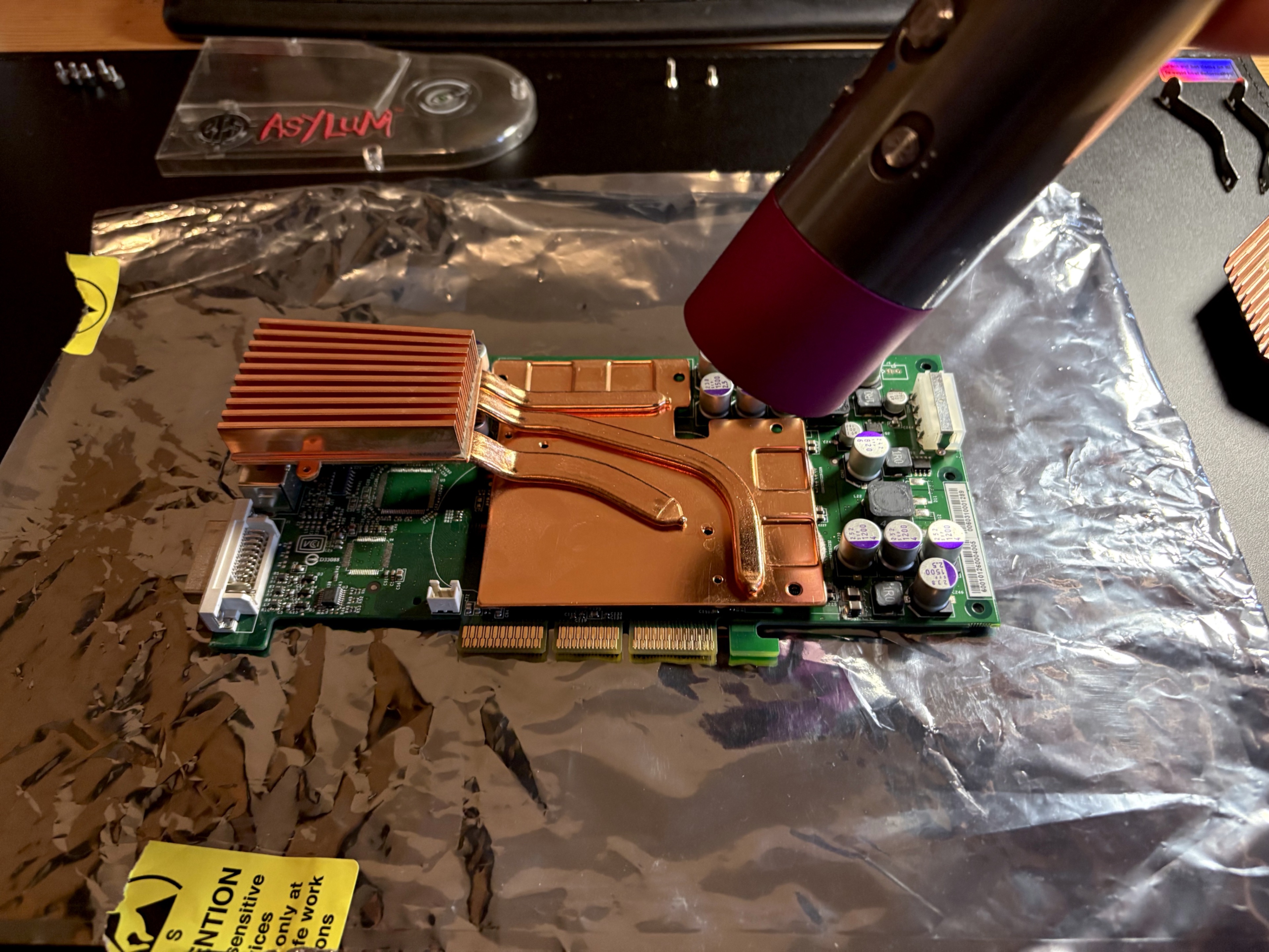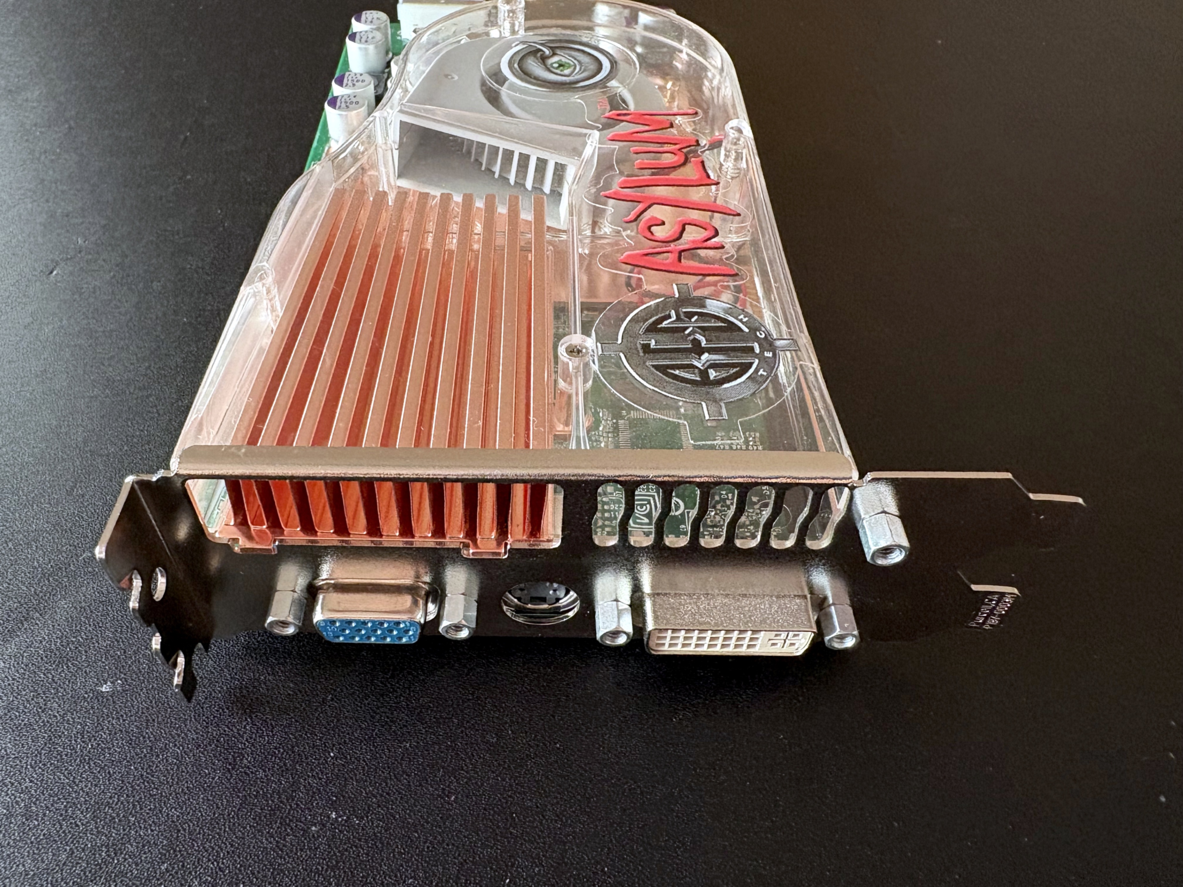 Und so habe ich es aktuell in Betrieb. Ein paar kleinere Sachen habe ich noch gemacht, wie z.B. die SATA Ports repariert, die gingen vorher nicht zuverlässig. Hier gerade aufgebaut mit einer Gigabyte 6800GT.
