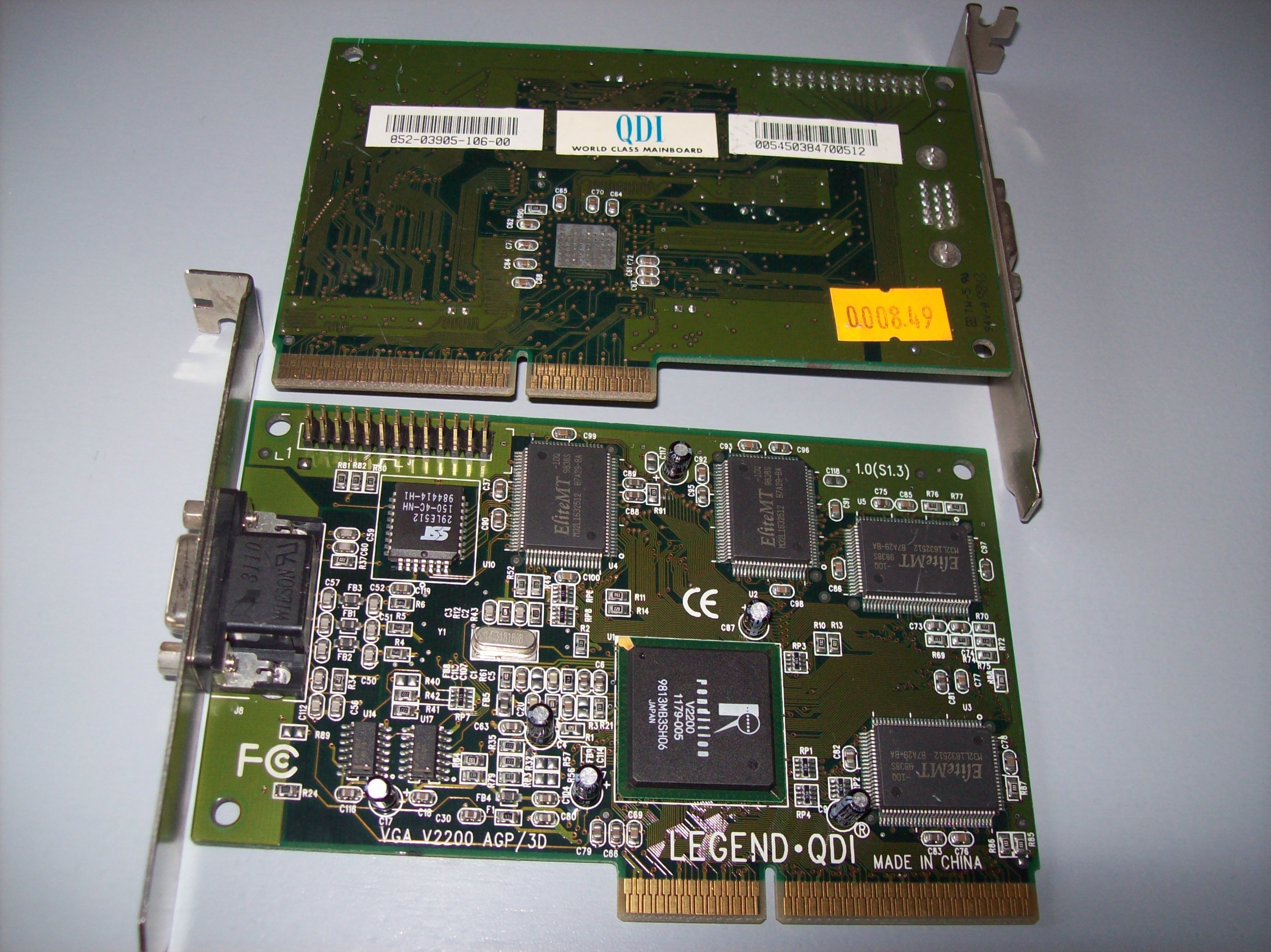 Hier sind zwei (identische) Nachfolger der Karte, die @Maniac81 letztens gepostet hat. Die VGA V2200 AGP/3D von Legend QDI aus dem Jahr 1997. Die AGP-Karte verfügt über 8MB SGRAM und es war der schnellste Rendition-Grafikchip (Vérité V2200) verbaut, der je in Serie ging.