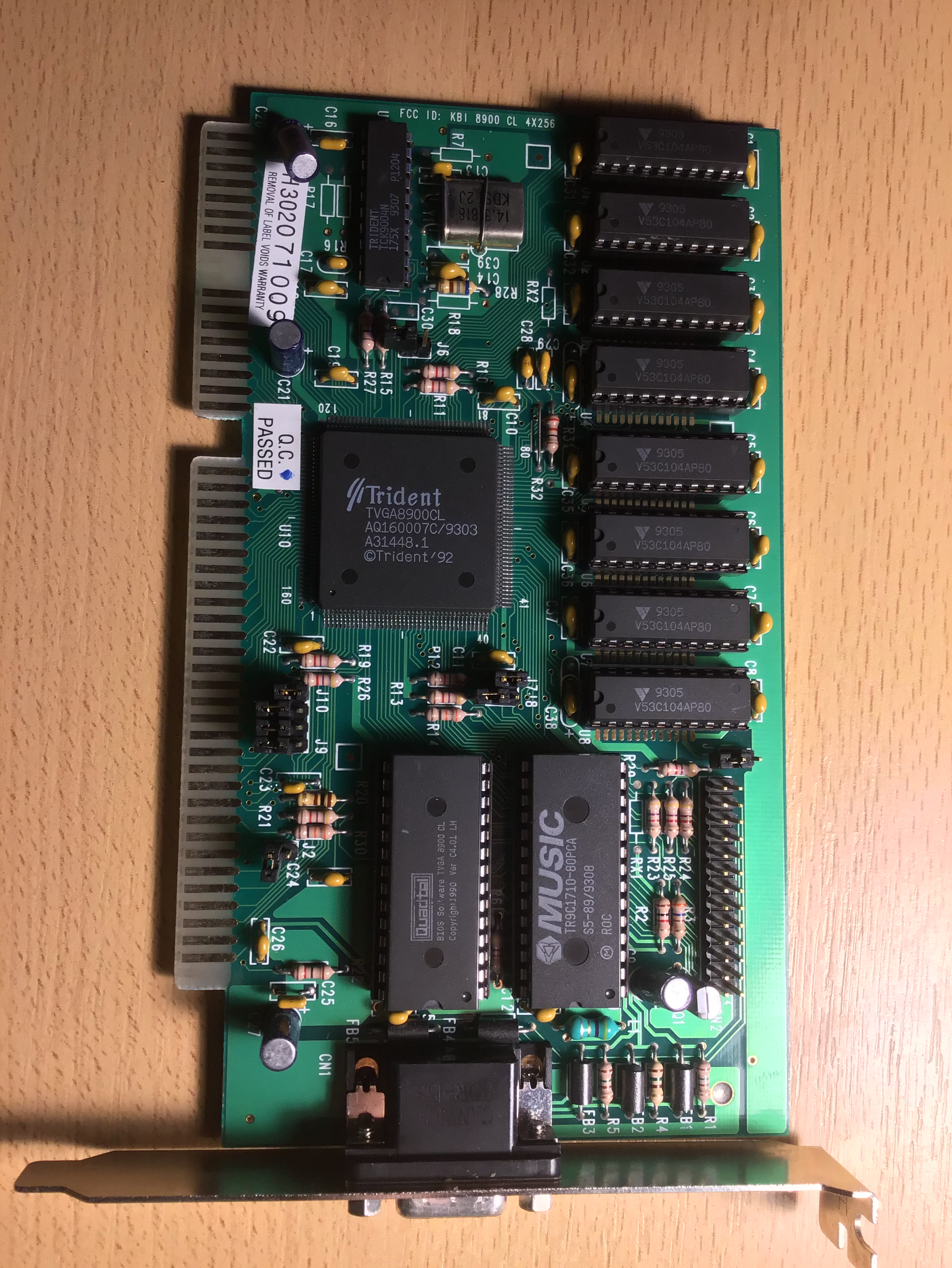 Eine Trident 8900CL, allerdings kaum benutzt, da ich sie nach knapp 6 Monaten durch eine Tseng ET4000 ersetzt habe. In Spielen war die Tseng doch einfach spürbar schneller. Die Karte sieht meiner Meinung noch Heute aus wie damals, als sie frisch verbaut wurde.