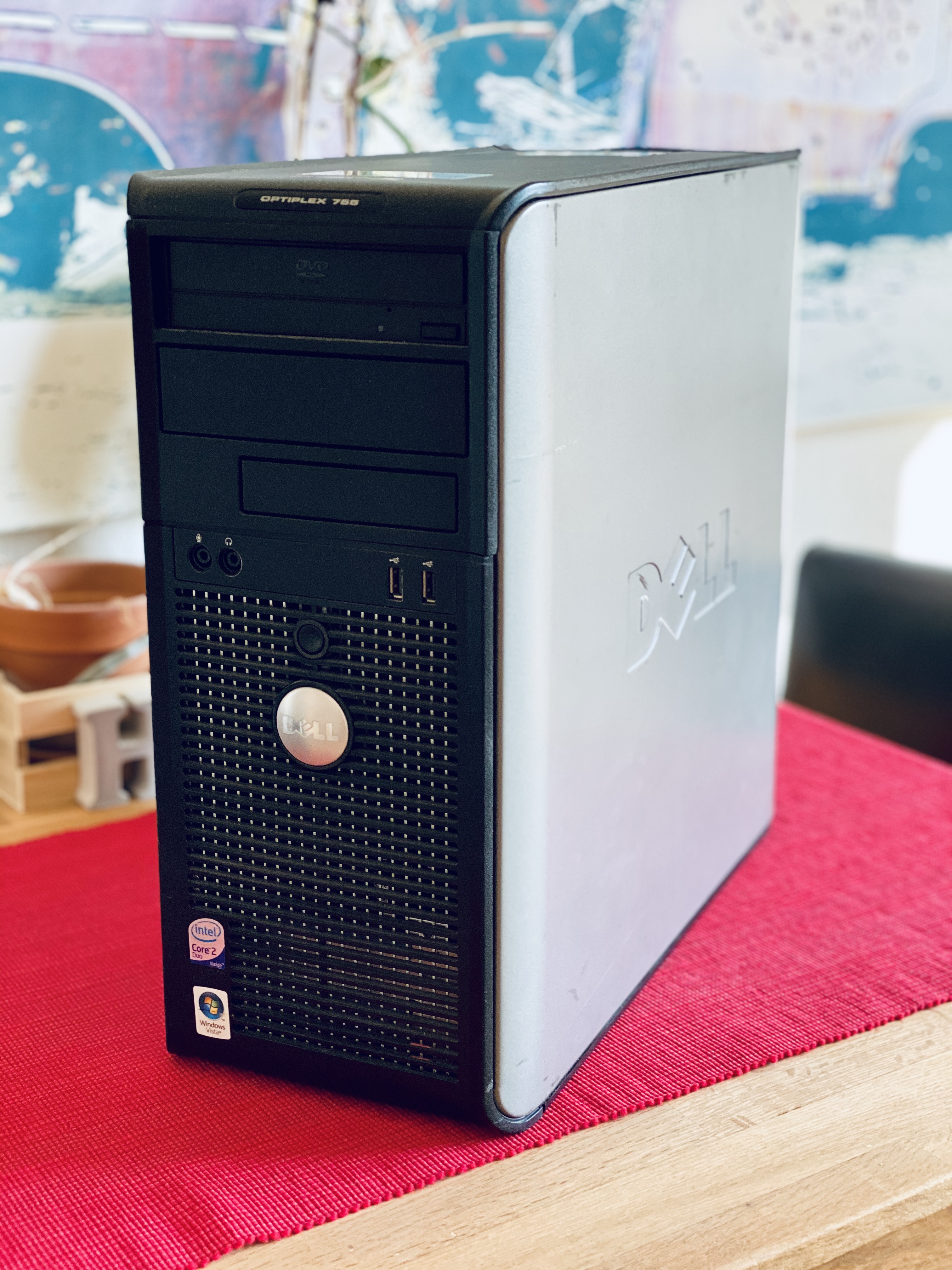 Los gehts mit diesem DELL Optiplex 755 mit Intel Core 2 Duo-Prozessor und ner DVI-Anschlusskarte fĂŒr den PCIe-Slot. Weitere Details folgen, sobald er angeschlossen ist und lĂ€uft, aber hier schon ein paar Hardware-EindrĂŒcke đ.