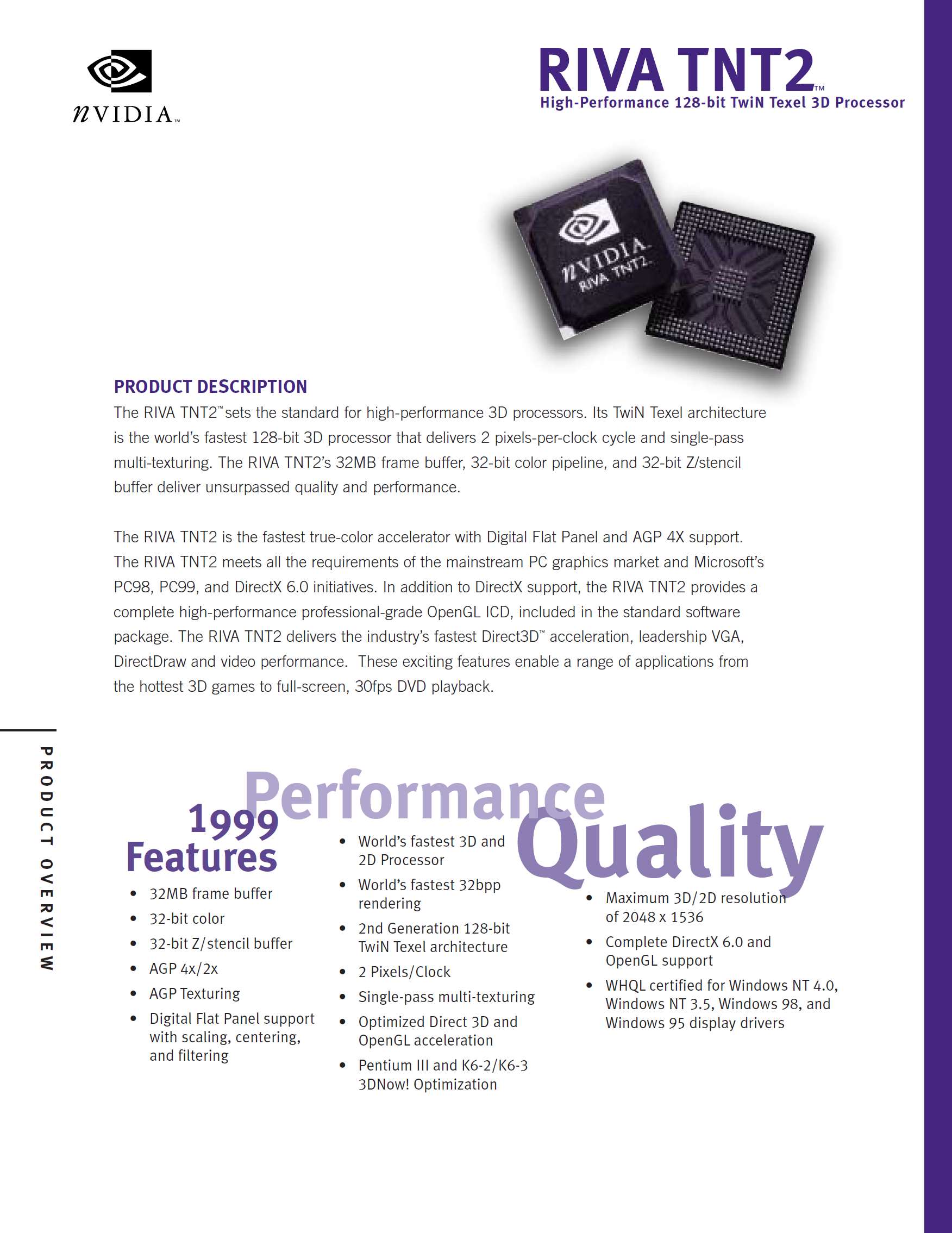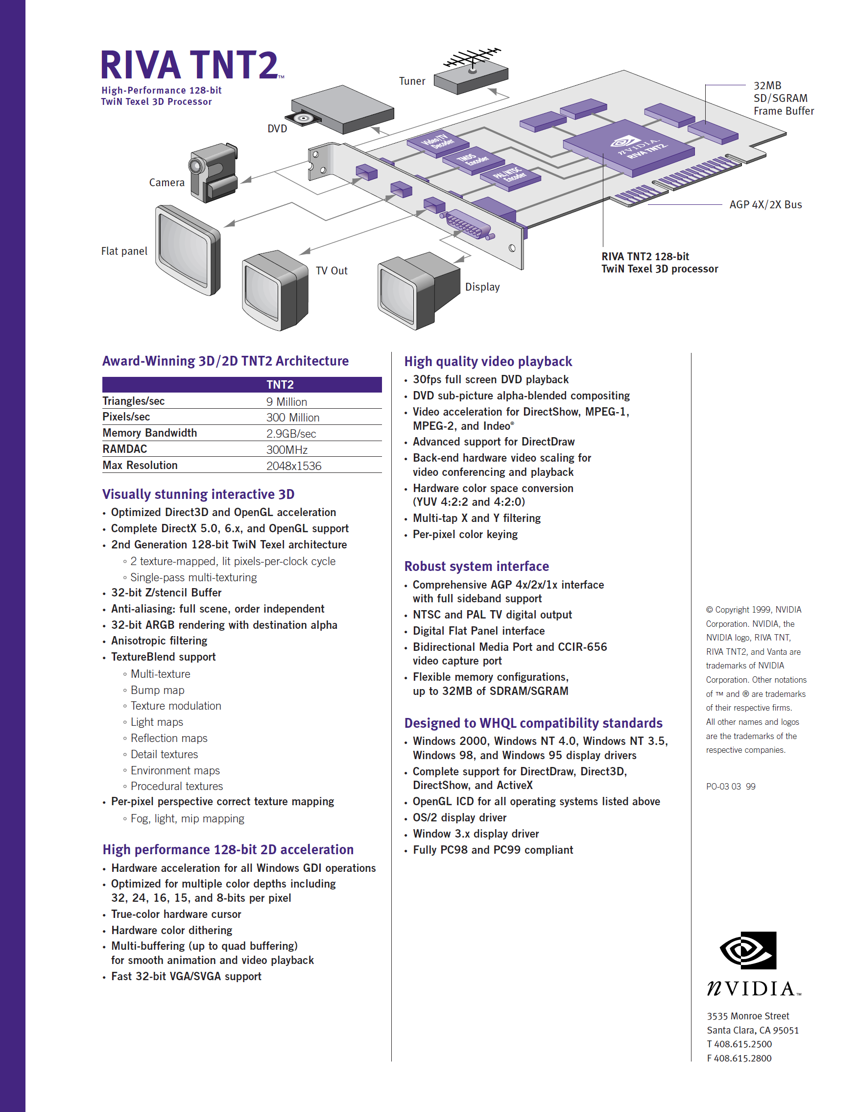 Wer gerne in alten Techsheets schmökert... gerade noch in meinem Treiber-Ordner der Diamond Viper v770 gefunden, ein Techsheet der NVidia RIVA TNT2-Karten (PDF) von 1999.
