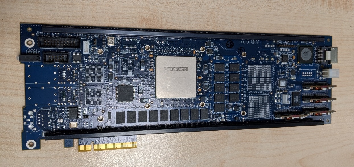 " Eine NFE-3240 Paketanalysekarte aus unserem alten Intrusion Detection System. Erstaunlich, dass die Karte zwei eigene Lüfter hat, obwohl die in einem 1HE Server steckt. "