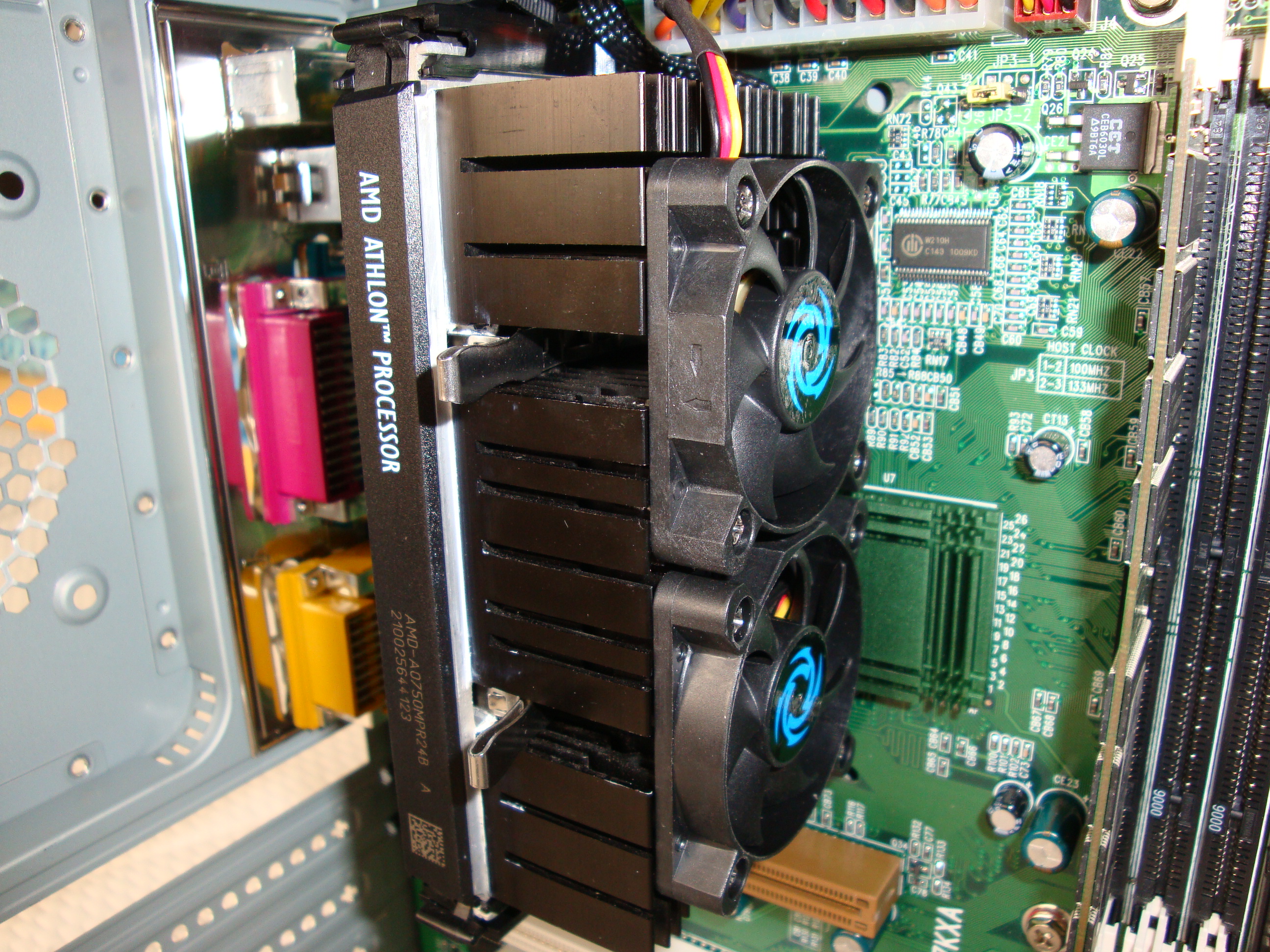 Mittlerweile abgelöst durch ein Asus K7V-T VIA KX133 und ebenfalls einen Athlon Slot A T-Bird, aber mit 1 GHz, den schnellsten für den Slot A: