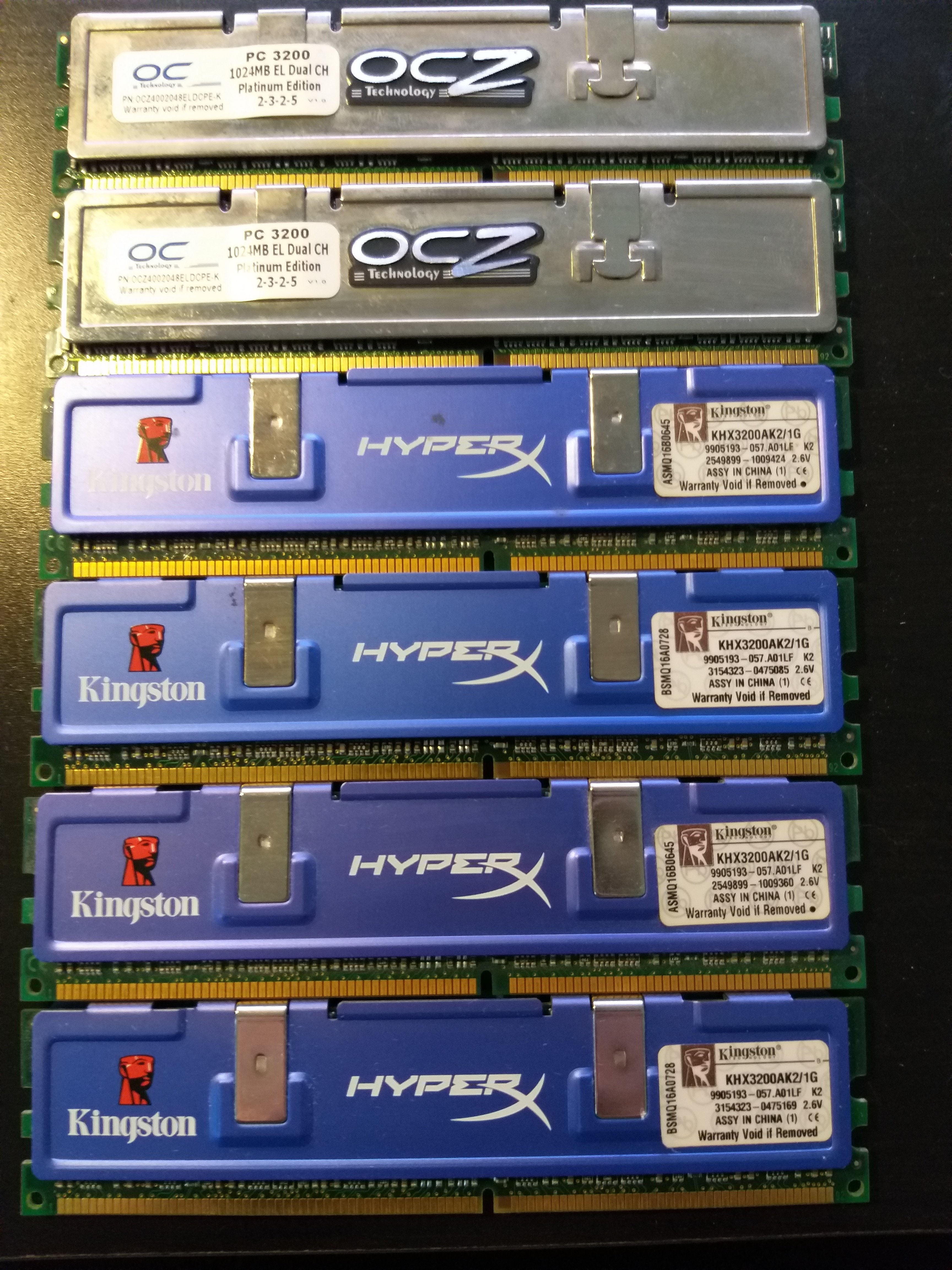 Die silbernen OCZ sollten mit Infineon bestückt sein. Die würd ich wohl mal auf Sockel 939 (vorzugsweise ein DFI) schnallen und denen mal Feuer machen. Der XP3000+ ist für Sockel A (oder auch Sockel 462), aber aus KW41 2003. Könnte also sein das der schon einen gelockten Multi hat. Ich meine bis grob KW38 '03 wär der Multi offen gewesen.