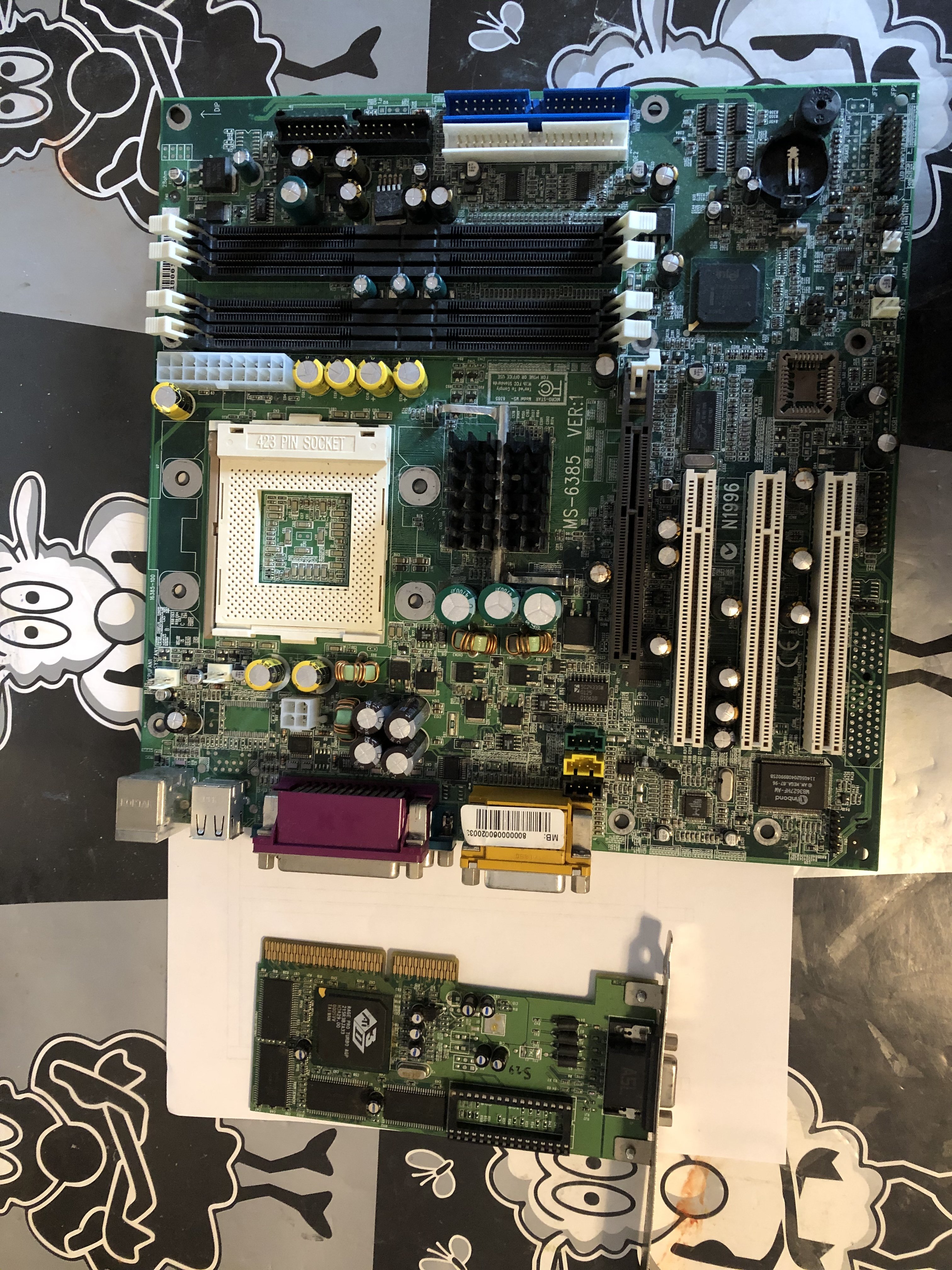 Eine ATI Rage die einfach ausging und einmal ein Socket 423 Board welches als funktionstüchtig eingelagert beschrieben war. Nachdem ich es bekommen habe und gesehen habe das sämtliche Jumper am Board fehlen habe ich schon schlimmes befürchtet. War natürlich dann auch so das trotz korrekter Jumper das Board keinen mucks von sich gibt. Hab dann sicherheitshalber noch ein Bios geflasht aber es blieb einfach tot.