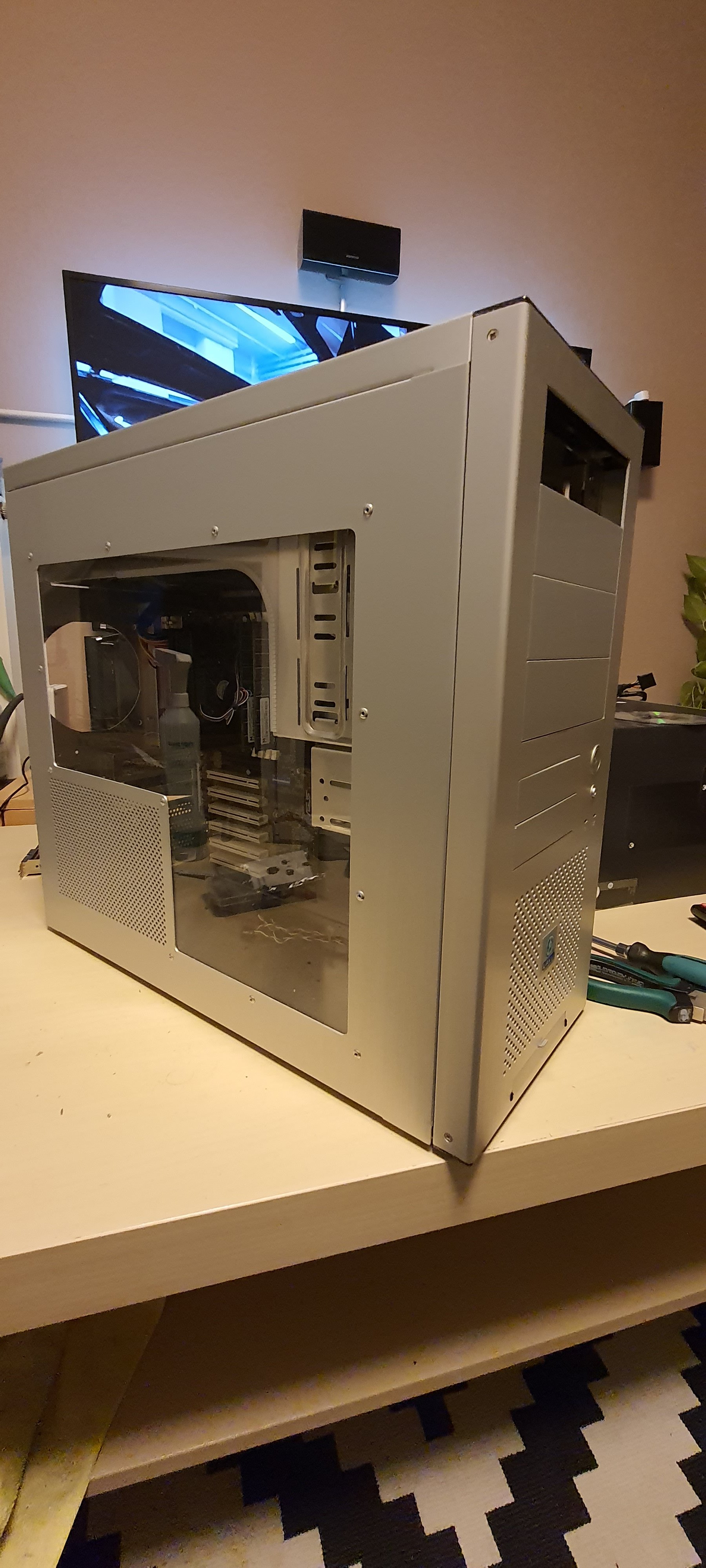 Lian Li PC-7, so gut es ging restauriert. Geputzt, poliert, neue RĂ€ndelschrauben, neue Slotblende, usw.