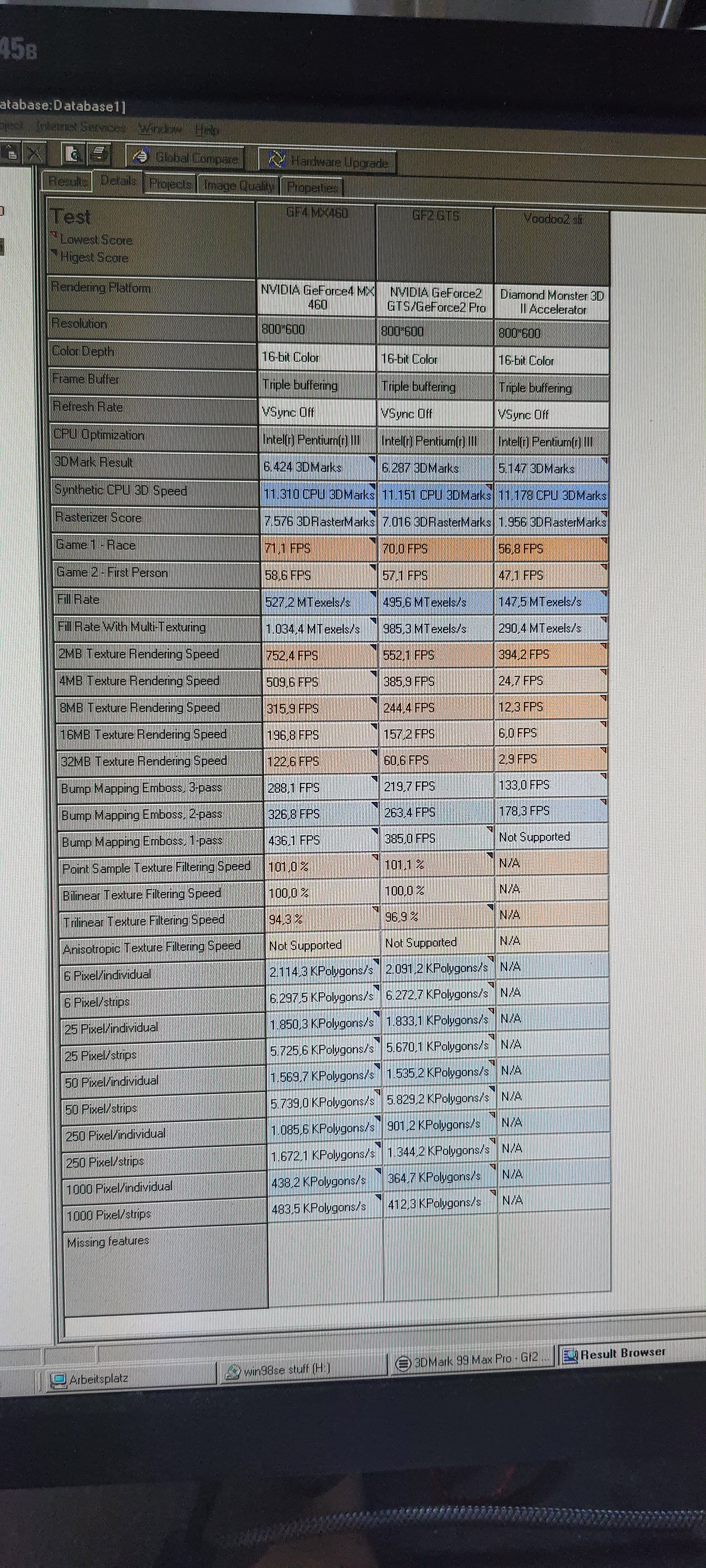 Ansonsten. Weiterhin ASUS P3B-F, Pentium 3 750, 2 Diamond Monster 12MB, Geforce 2 GTS, Soundblaster live CT4670.