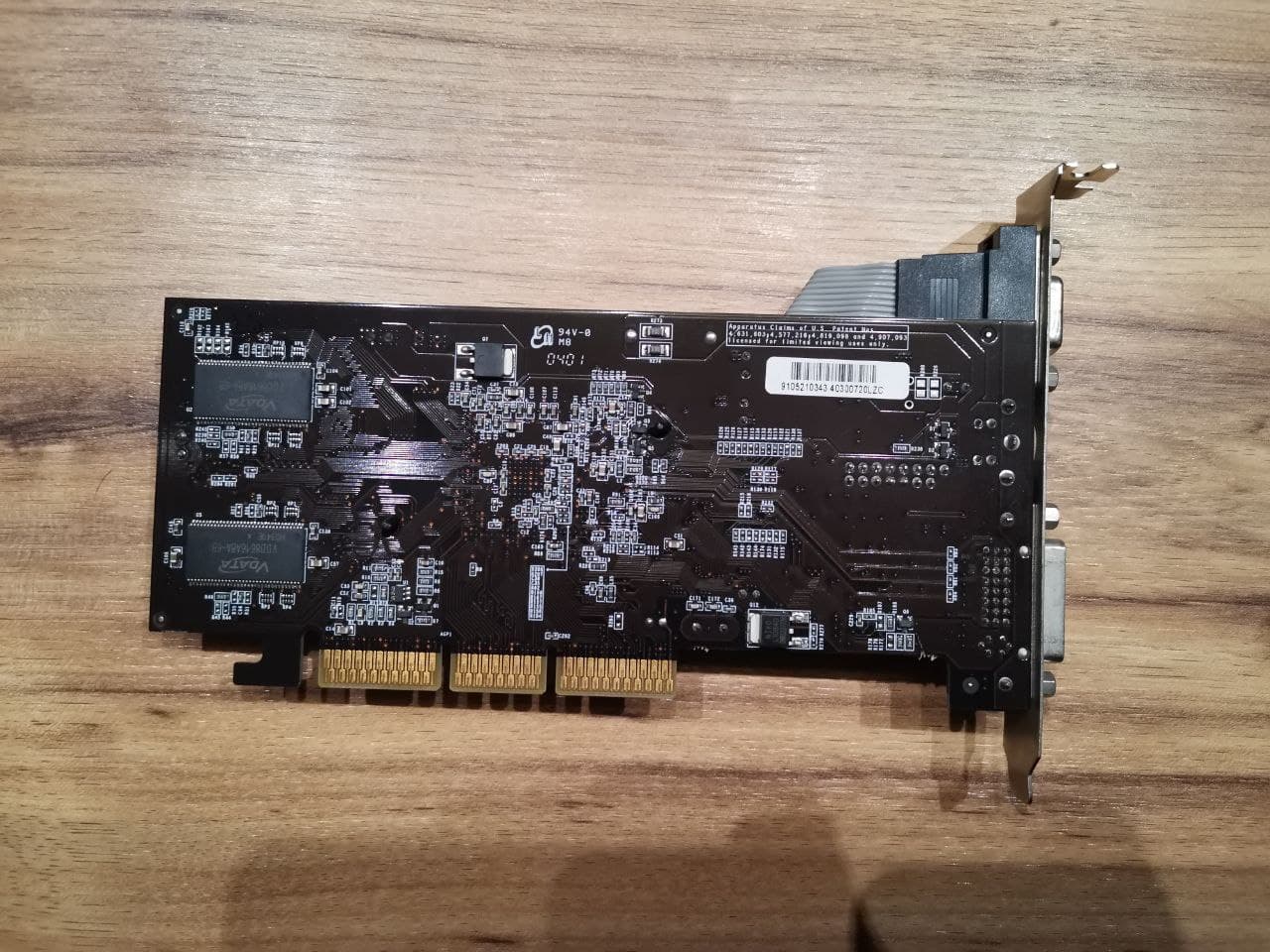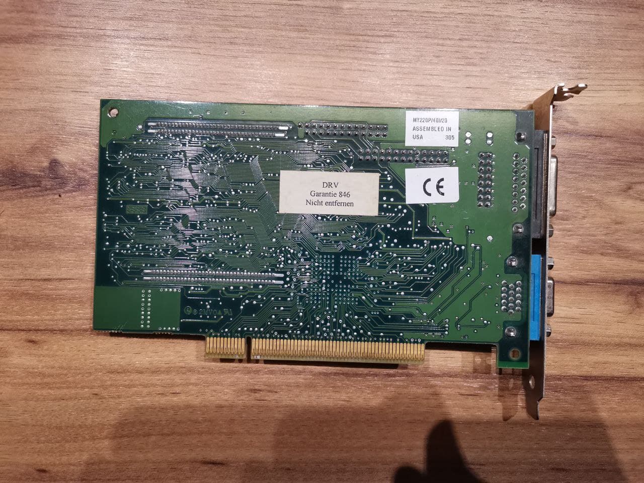 Eine Karte, die aktuell in Benutzung ist, ist die Matrox Mystique 220 Business aus dem Jahr 1997 mit gewaltigen 4MB SGRAM, welche man ĂŒber die auf der Oberseite sichtbaren Schnittstellen erweitern konnte, und(verdammt, kann das stimmen?!) 220MHz Speichertakt RAMDAC!